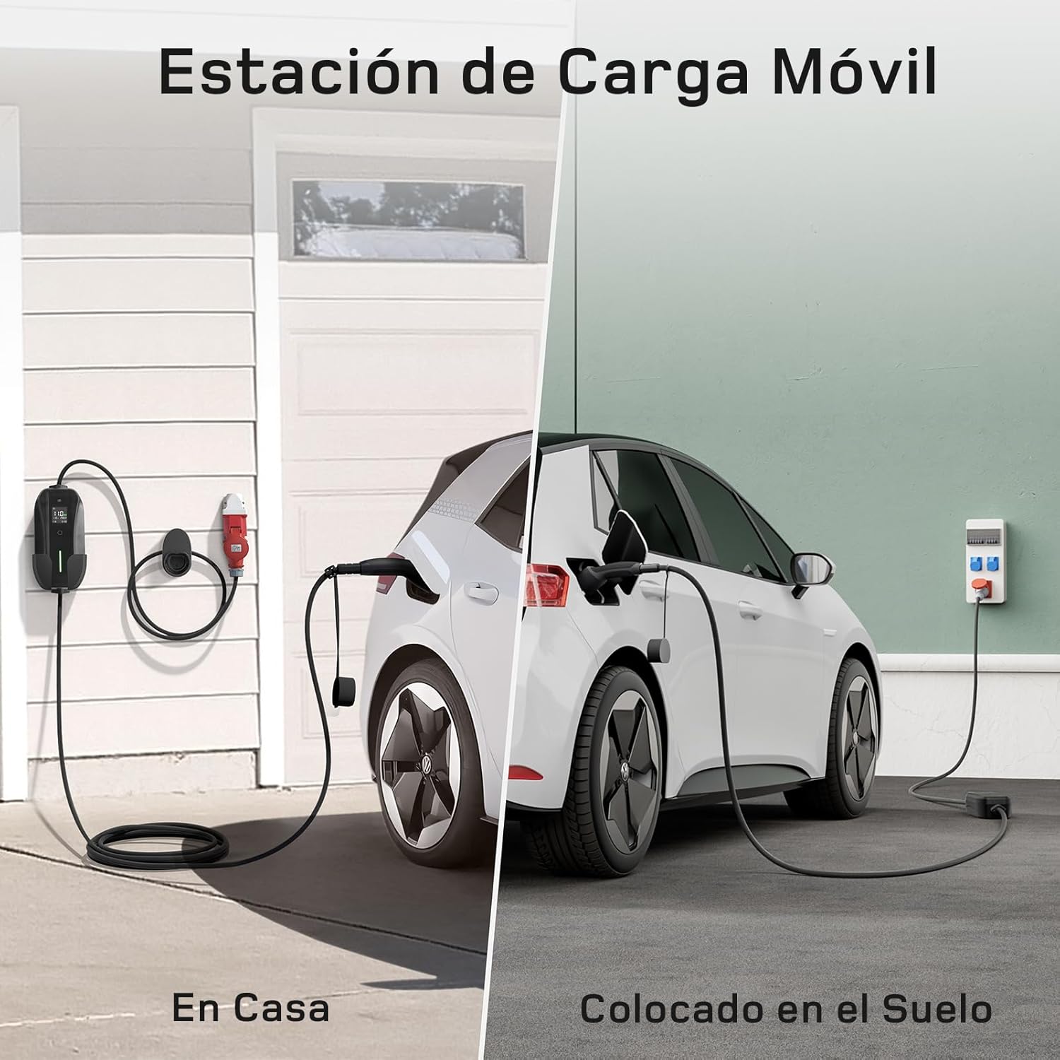 【Función 2 en 1】Una caja de pared de 11 kW + un cable de 7 m tipo 2 a tipo 2. Ahorre costos y espacio adicionales eligiendo este cargador portátil 2 en 1. La longitud de 6 metros le ofrece un alcance más amplio para cargar su segundo vehículo en la entrada o en el garaje.