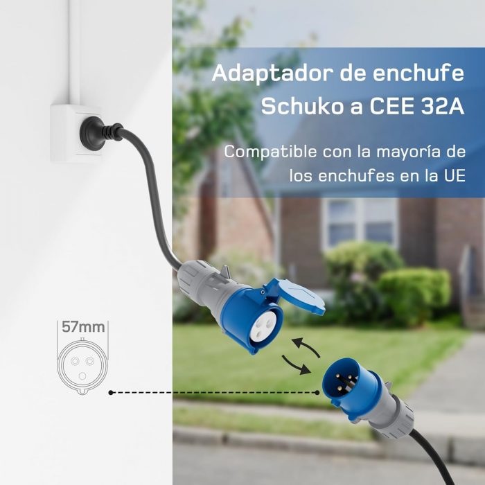 【2x Faster than 3.68kW Charger】With a CEE 32A charger, you can achieve 7.4kW per hour (230V x 32A), which is twice as fast as using a Schuko charger. Adjustable current configurations (6A/10A/16A/20A/24A/32A) accommodate all your charging needs.