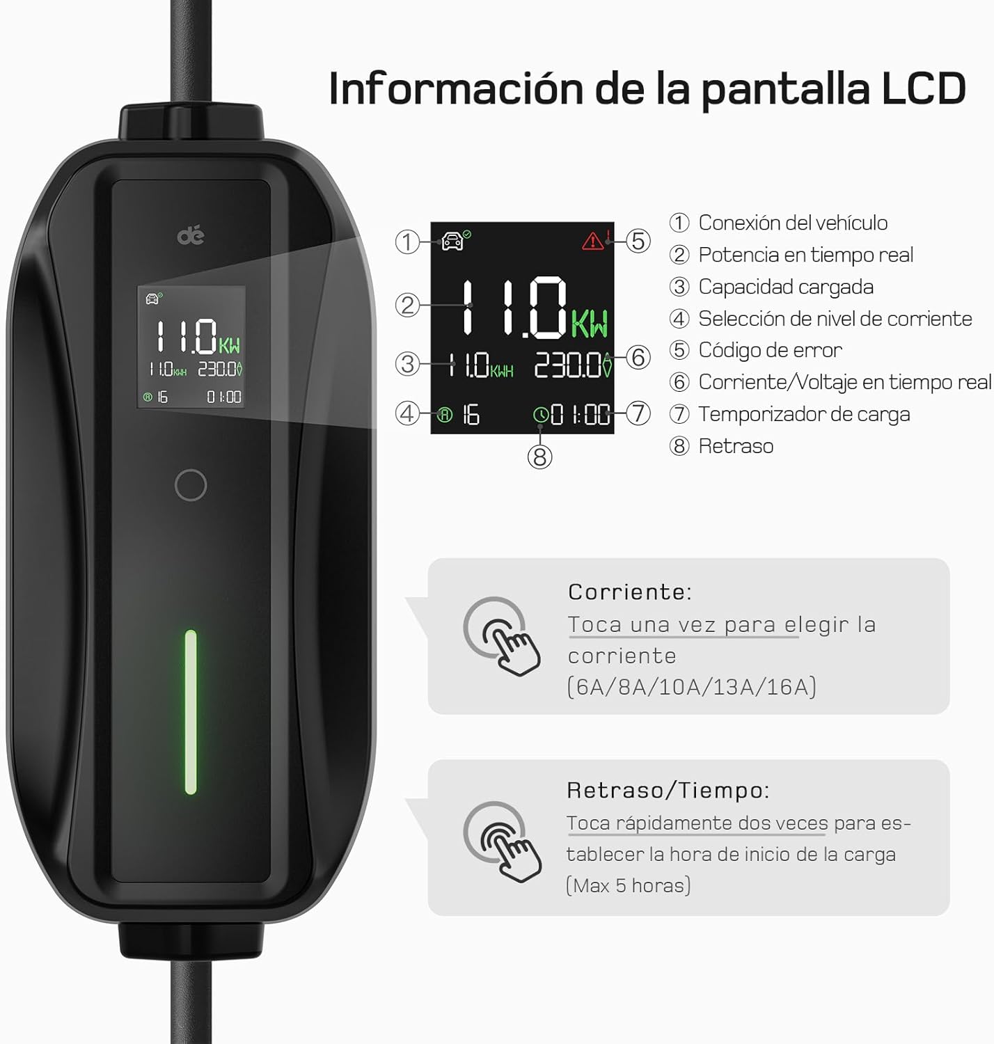 Sé el primero en valorar “dé EV Charger 11kW, Electric Car Charger 16A [3-Phase | 7m| 6-16A] dé with Adjustable Charging Power, Mobile Charging Station / Wallbox for Model 3/Y 500e, Spring and Other EV/PHEV” Cancelar la respuesta