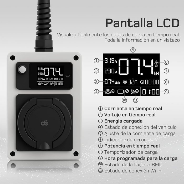 Sé el primero en valorar “dé Wallbox 7.4 kW Single Phase [6-32A, with App and Wi-Fi], EV Charging Station with CEE Plug and RFID Card, for Model Y/3, GLC, A250 and Other Electric Vehicles and PHEV” Cancelar la respuesta