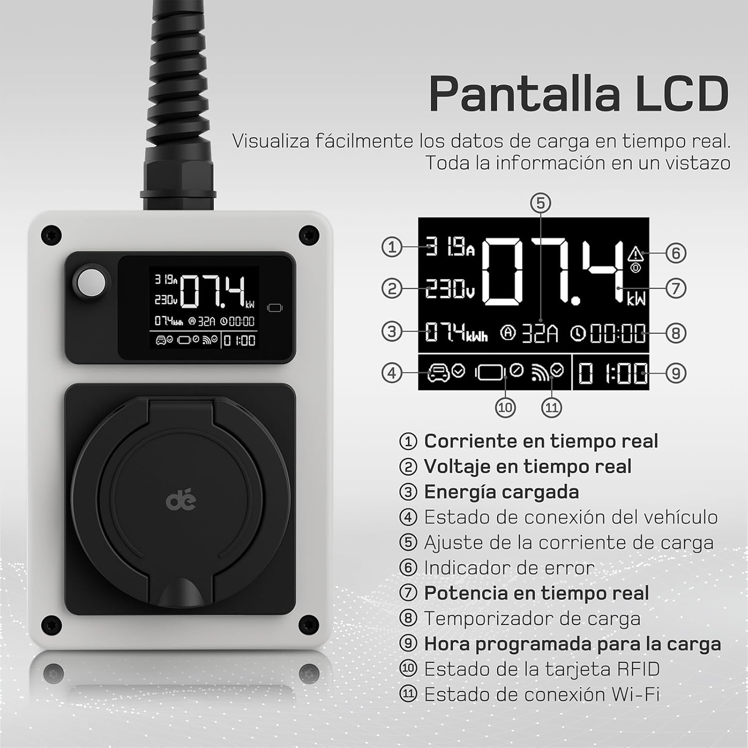 dé Wallbox 7.4 kW Single Phase [6-32A, with App and Wi-Fi], EV Charging Station with CEE Plug and RFID Card, for Model Y/3, GLC, A250 and Other Electric Vehicles and PHEV