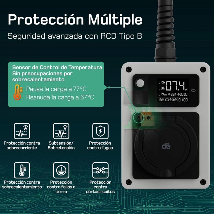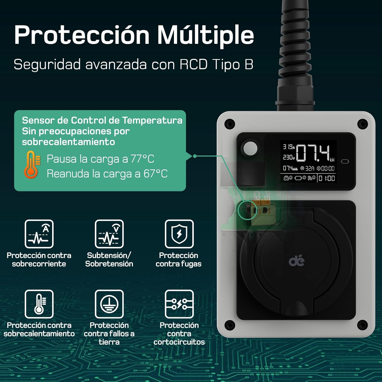 【Safety Guarantee】This charging station is equipped with dual protection, with a 30mA AC and 6mA DC type B fuse, protecting both the charger and the electric vehicle during charging. This ensures exceptional security, with a special focus on user protection.