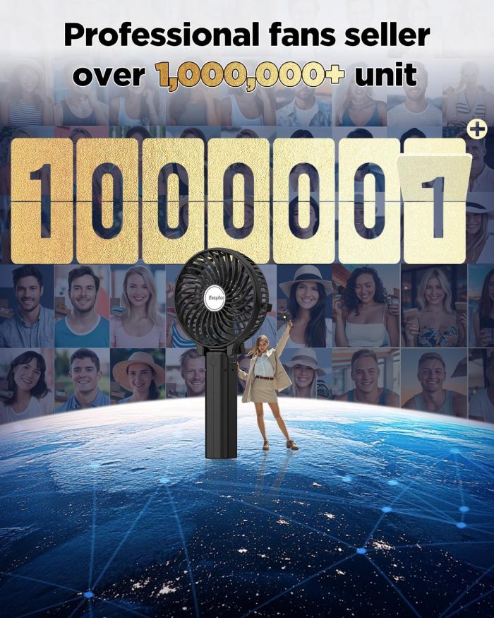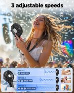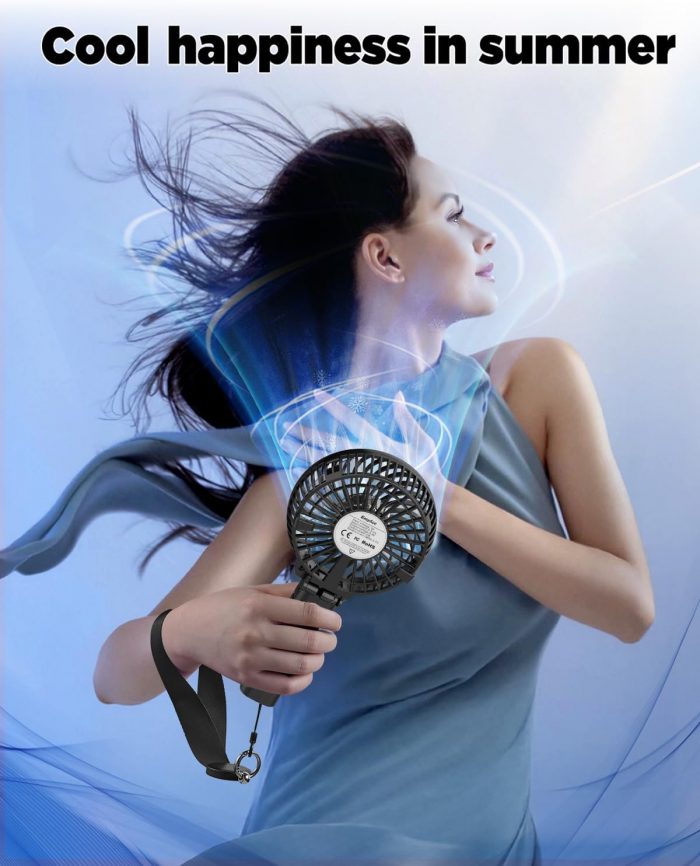 Ventilador Portátil: Con el diseño de manija plegable, el ventilador podría sostenerse fácilmente en la mano y llevarse sobre la marcha, perfecto para viajar, caminar, senderismo, escalar, camping, hacer ejercicio y más.