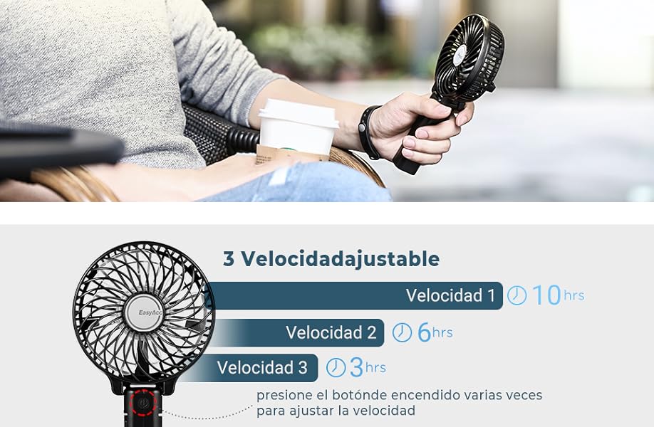 Inicio Other manufacturers EasyAcc Mini Portable Outdoor Electric Fan with Rechargeable Battery, 3-10 Hours, Folding Handle, for Home and Travel