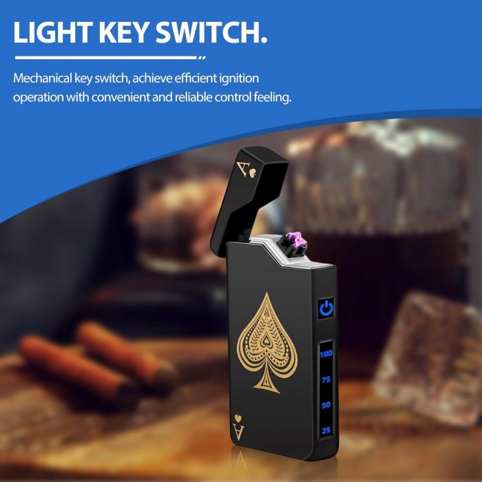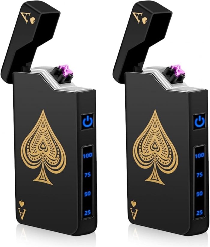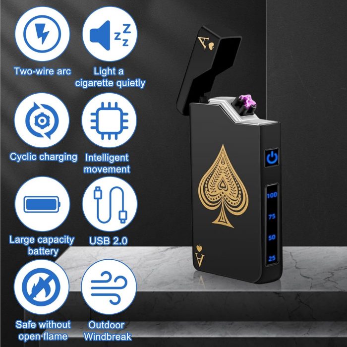 【Cool Ace of Spades Design】The lighter features a cool ace of spades on the surface, which is stylish and attractive. This is a lighter based on the traditional lighter, combined with electronic innovation, changing the traditional ignition method. A smart chip prevents overheating and the arc lighter has a 10-second auto-off protection.