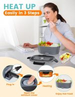 【FAST 80W HEATING】Enjoy hot meals in 20-40 minutes! Our portable electric lunch box uses efficient PTC heating technology to warm food evenly and safely while preventing overheating. For best results with frozen/dry foods, add a splash of water. Perfect for professionals needing quick, homemade meals without a microwave!