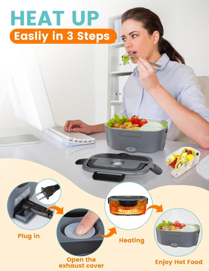 【ENJOY HOT, HEALTHY MEALS ANYWHERE】Ditch fast food and savor homemade lunches with this portable electric lunch box. Heats meals evenly in 20-40 minutes—just plug in before lunchtime. Pro tip: Add a splash of water/stock for faster results with drier foods. Perfect for health-conscious professionals at offices, job sites, or on the road. Your delicious alternative to cold sandwiches and microwaves!