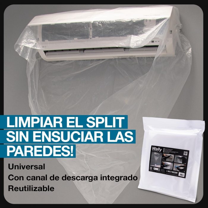 Wally: Protective Cover for SPLIT, suitable for any model of air conditioner, adjustable with elastic cord, reusable, allows you to clean the internal unit of the air conditioner avoiding soiling walls and floors, transports all the dirt to a bucket thanks to the drainage channel