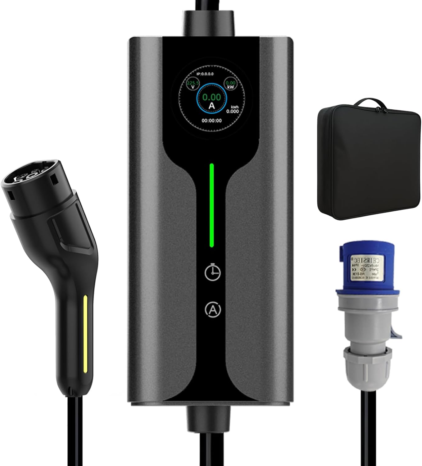 Estación de Carga Auveach para Coche Eléctrico Tipo 2 Schuko 7,36kW | 6-32A | Cable Cargador de 5 m para Coche Eléctrico con Pantalla LCD Compatible con Modelo Y EV/PHEV IP65, IEC 62196-2