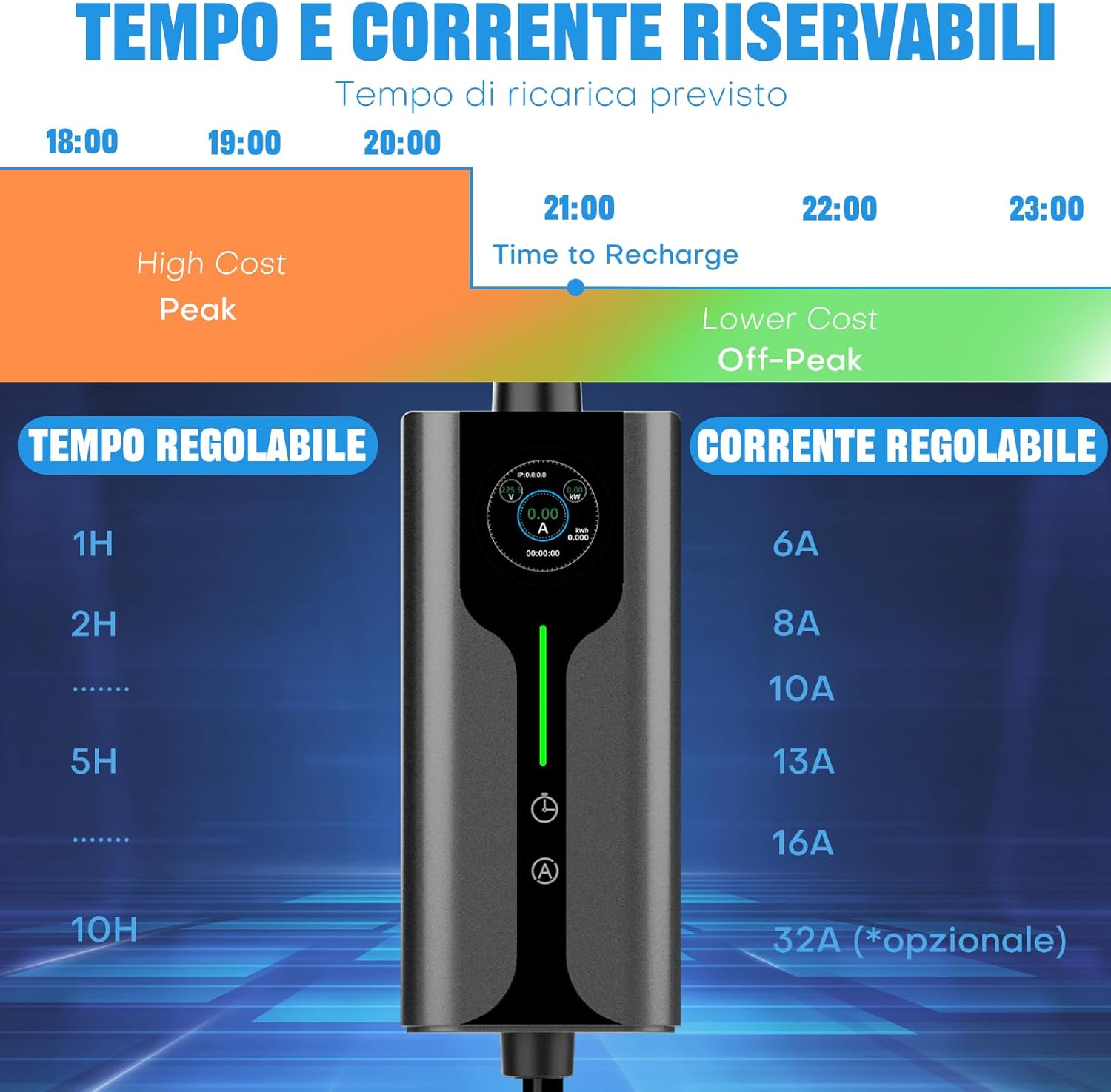 【Fácil de Usar】Diseño portátil: no requiere instalación (un enchufe Schuko estándar es suficiente). Cable de 5 m para máxima flexibilidad. Admite carga programada: es posible configurar el inicio de la carga después de 1 a 10 horas, y la duración de la carga se puede seleccionar entre 1 y 10 horas. Reduzca los costos de carga a domicilio hasta en un 50% aprovechando tarifas por hora reducidas