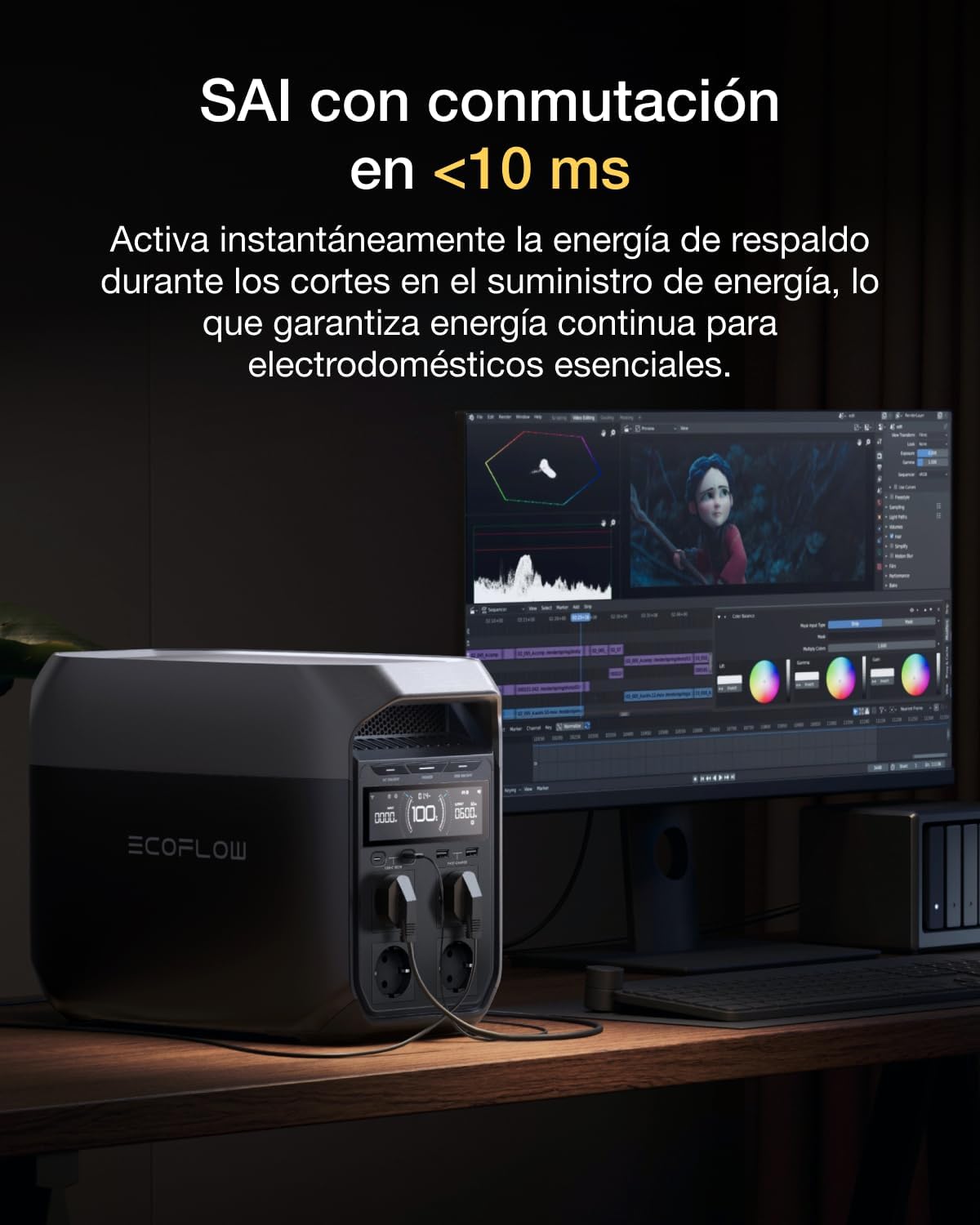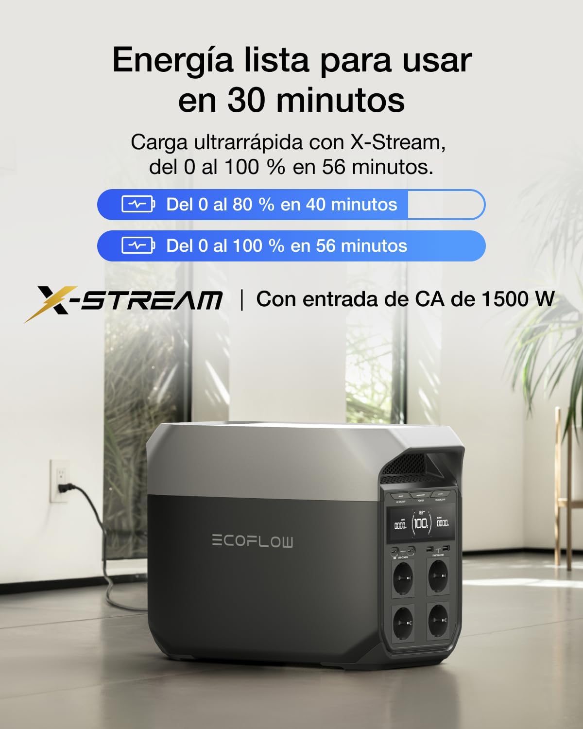 (Energía lista en 30 minutos) EcoFlow DELTA 3 con tecnología X-Stream ofrece una salida de CA de 1500 W, alcanzando un nivel de carga seguro en 30 minutos, 80 % en 40 minutos y 0-100 % en solo 56 minutos. Ideal para uso en interiores, exteriores o mientras viaja, lo que reduce el tiempo de espera para acceder rápidamente a la energía.