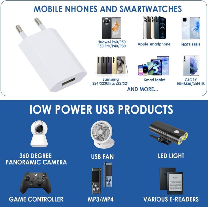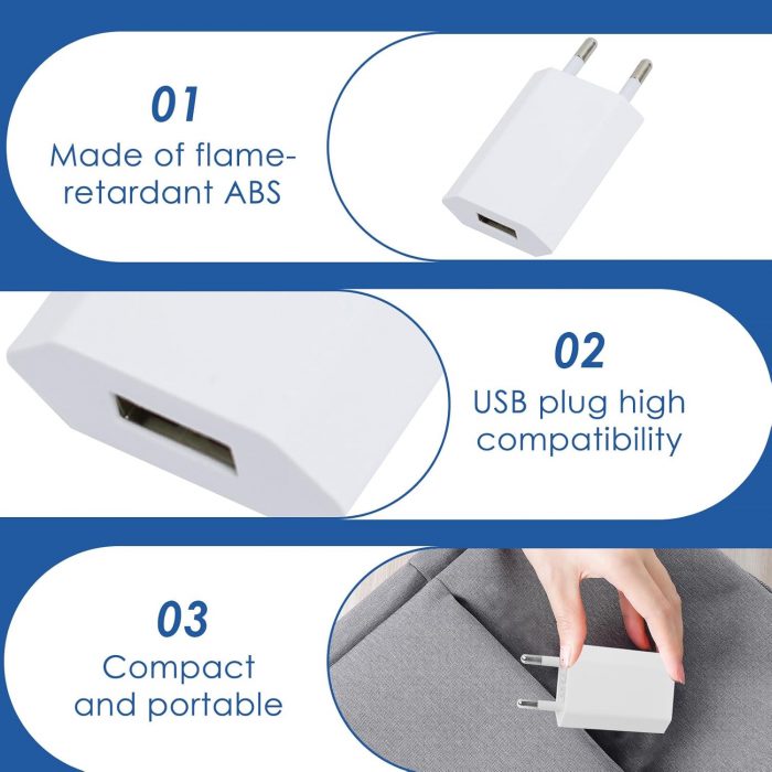 【Universal Compatibility】USB A charger compatible with all USB-A charging cables, such as those supplied with your smart phone, cell phone, camera, etc.