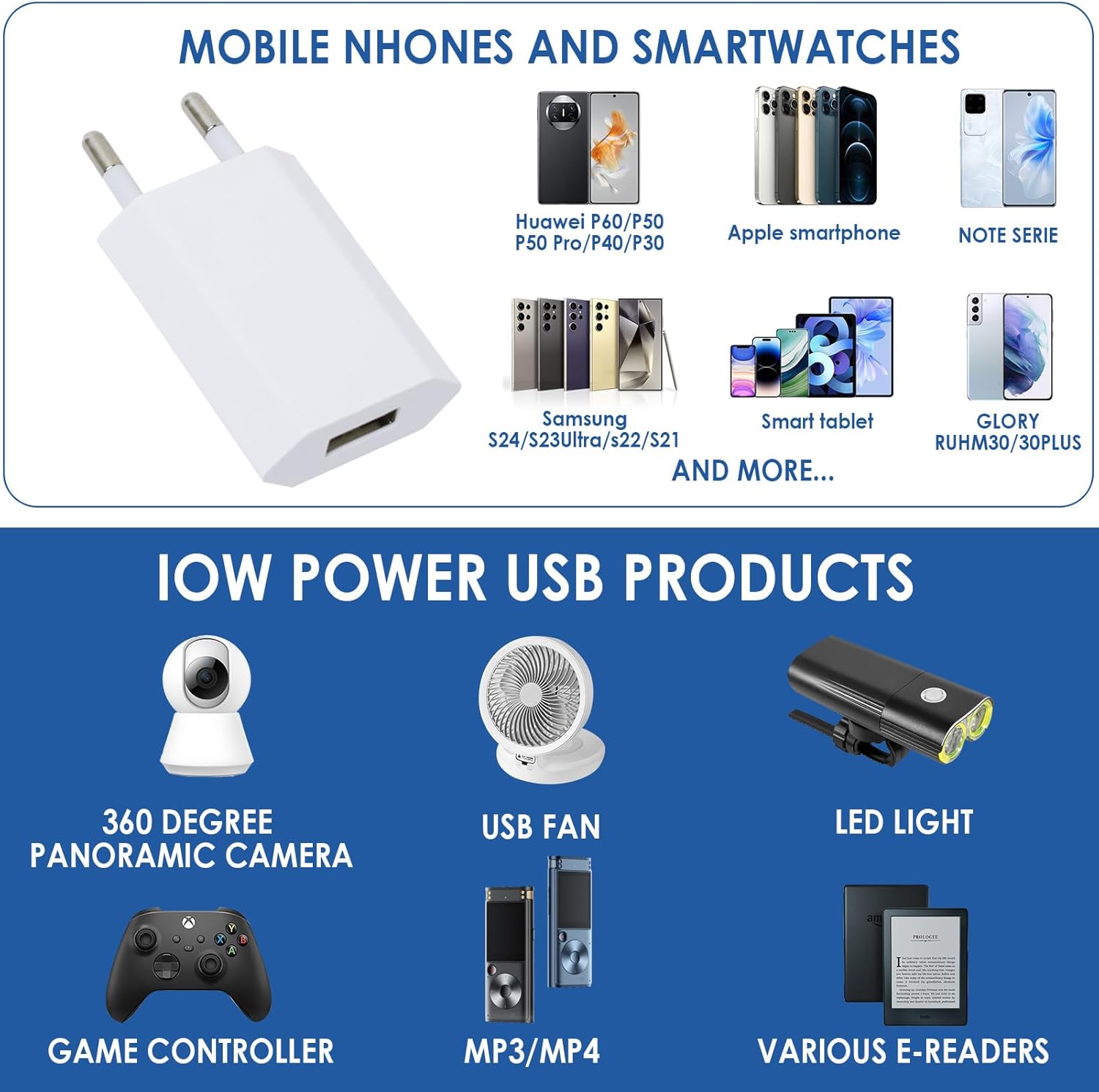EuAcesry Universal 5V 1A USB Charger, Quick Charge Plug Adapter USB A, Head Carregador Charger Mobile Compatible with i-Product XS MAX XR X 8, 7, 6, 6S, 5S Plus, Xiaomi, Samsung