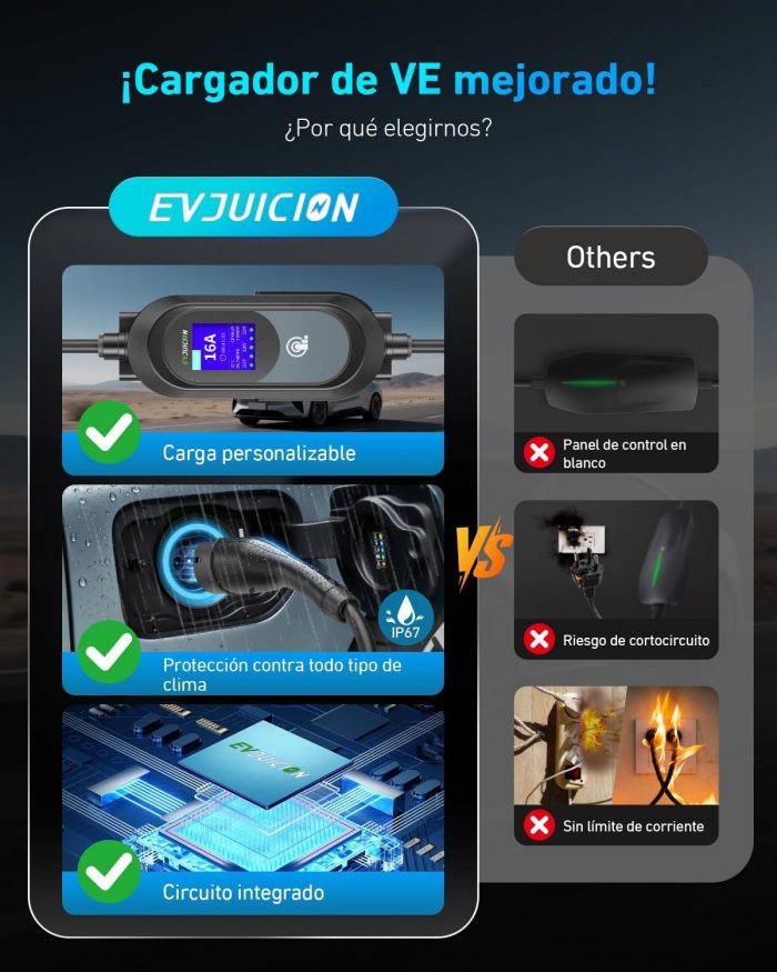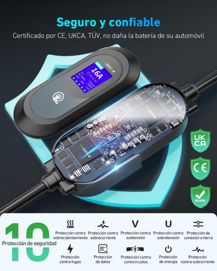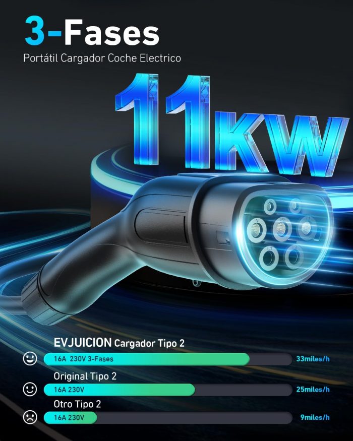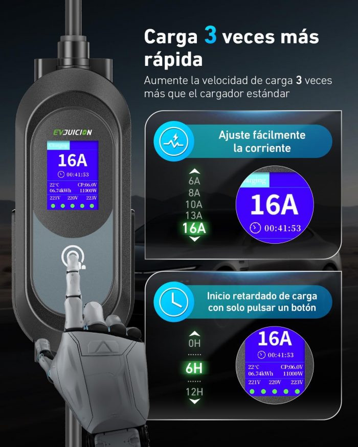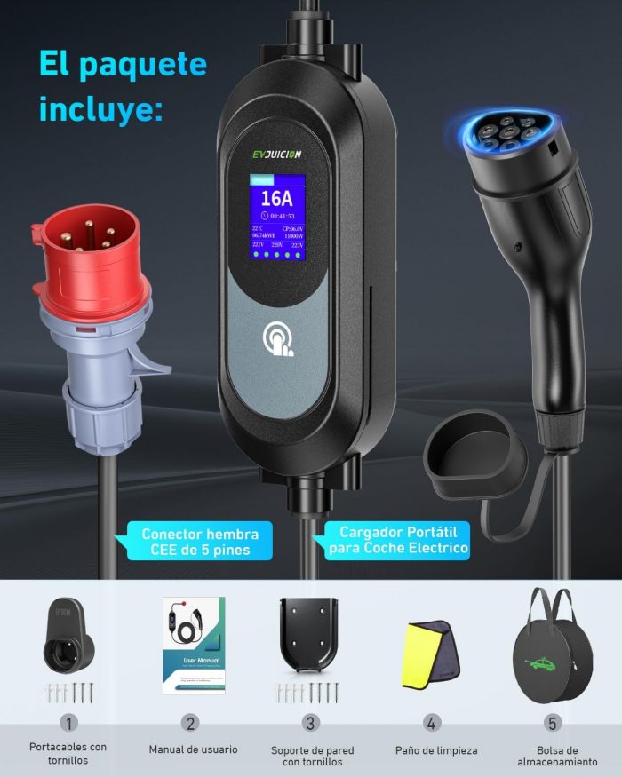 Sé el primero en valorar “Evjuicion Electric Car Charger 11 kW [6M, 3 Phases] Charging Cable Electric Car, 6/8/10/13/16A Charger Type 2 with Wallbox Stand, Portable Charging for Electric Vehicles Type 2 with Bag” Cancelar la respuesta