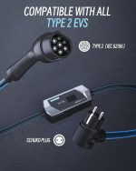 DISEÑO DURADERO Y FÁCIL DE USAR: inspirado en el diseño resistente del Cybertruck, este cargador para vehículos eléctricos tipo 2 está diseñado para durar. Su estética elegante y moderna mejora la funcionalidad. Simplemente conecte el enchufe de 2 clavijas a un tomacorriente Schuko y el otro extremo a su vehículo eléctrico tipo 2 para cargarlo cómodamente en cualquier momento y en cualquier lugar.