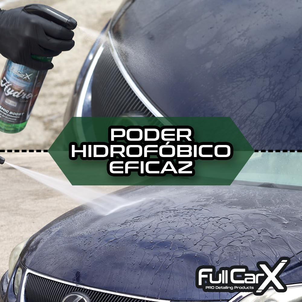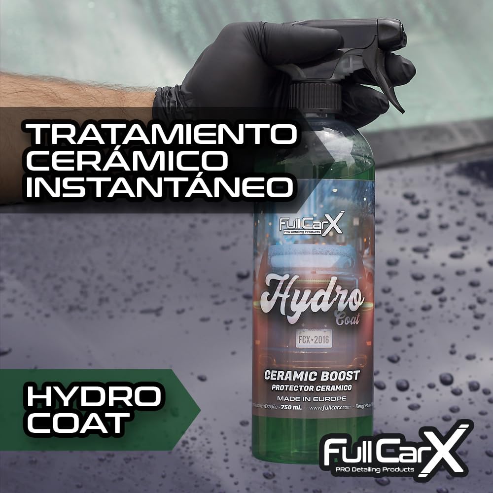 LONG-LASTING: Once applied, Hydro Coat ceramic and hydrophobic treatment lasts up to 2 months. With poor application of the product may remain stains or residues, but can be easily removed with FullCarX Liquid Carnauba Wax or manual polish.