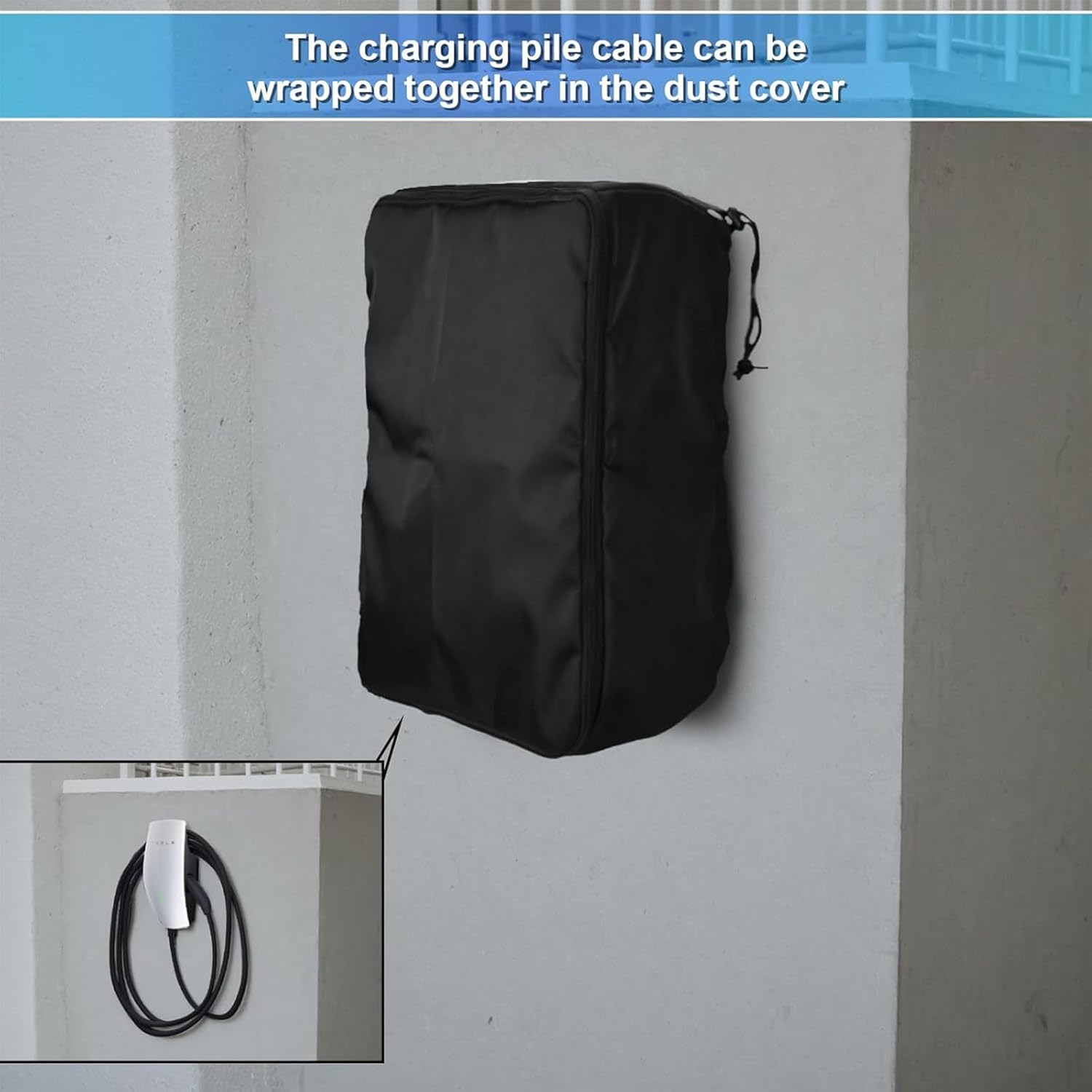 VENTILACIÓN Y SECADO: El uso de tela Oxford de alta densidad que bloquea la infiltración de agua de lluvia, garantiza una limpieza prolongada y resiste el agrietamiento o la decoloración. Mantiene la ventilación necesaria y una sequedad óptima para una protección efectiva del cargador de su coche eléctrico.