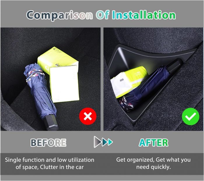 【Increase Extra Storage Space】 Effectively use the large space on both sides of the trunk to store small parts, tools, equipment and emergency supplies at any time, so that the items in your trunk are no longer overloaded.