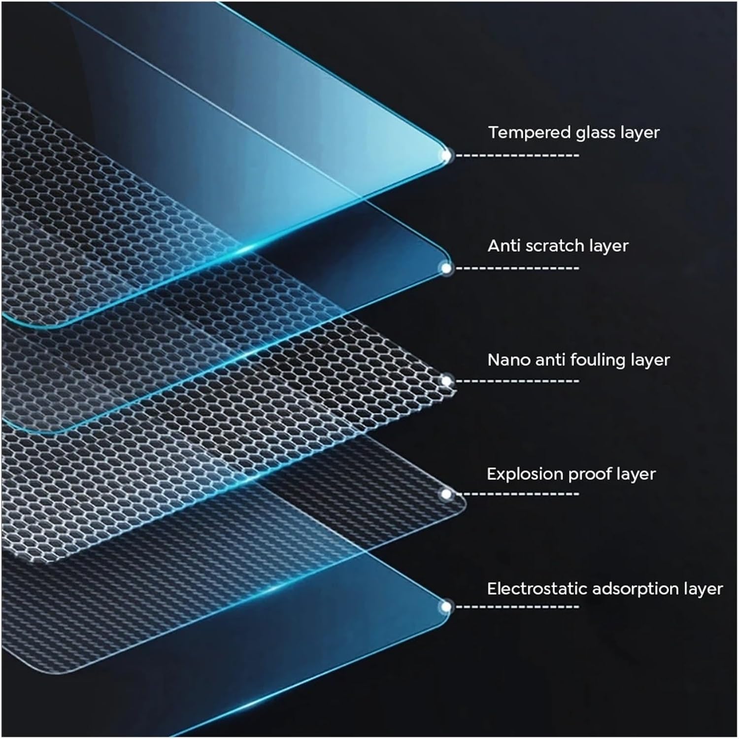 Contiene un revestimiento oleofóbico para reducir el impacto de las huellas dactilares, las manchas de aceite en la pantalla de su GPS, cuando la pantalla se ensucie, simplemente límpiela suavemente, tiene función a prueba de explosiones, ralentiza el impacto, incluso si el vidrio se rompe aún mantiene la forma del bloque, se usa de forma más segura.