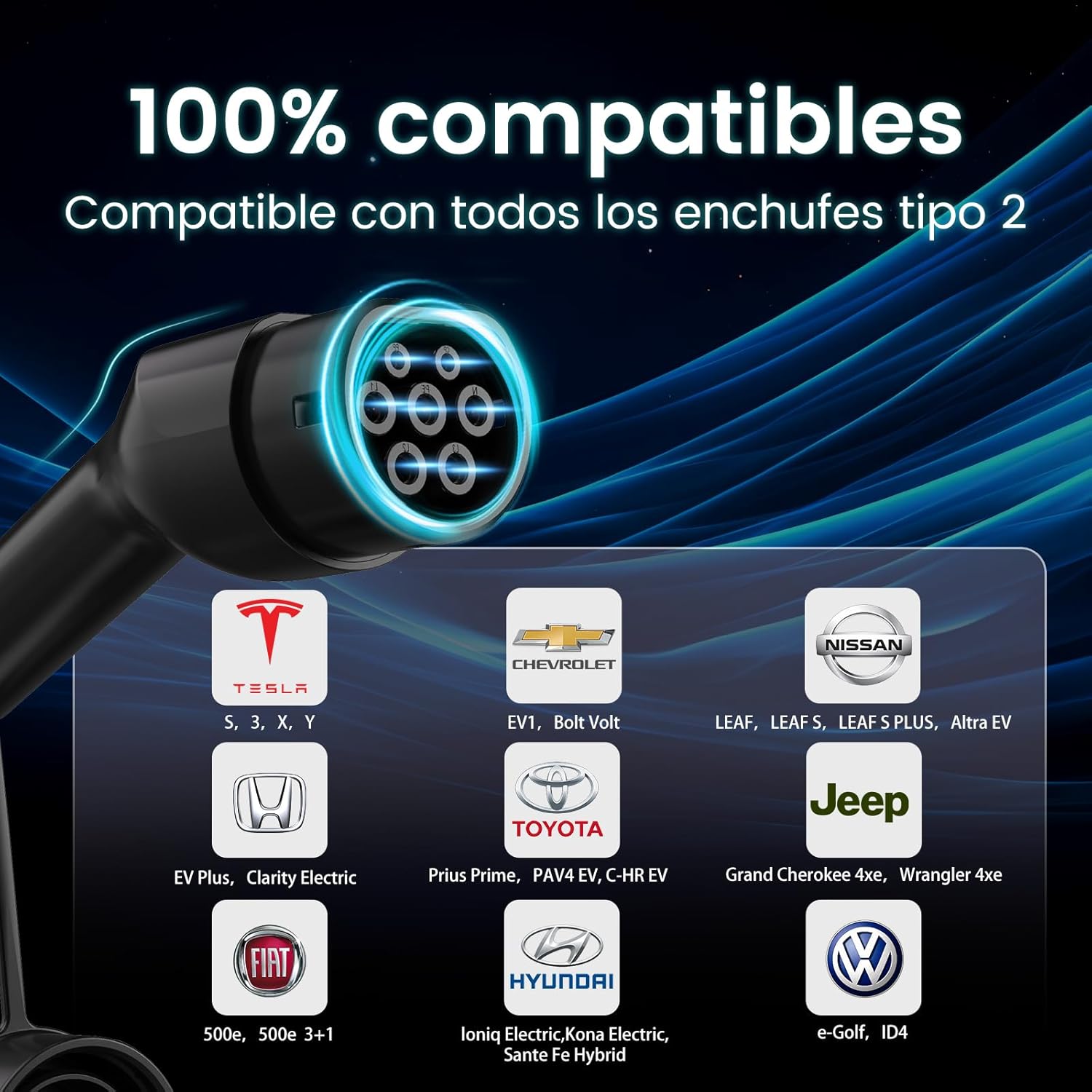 CARGA DE ALTA VELOCIDAD DE 7KW: la estación de carga para vehículos eléctricos tipo 2 admite una potencia de carga de hasta 7kW, lo que le permite cargar su vehículo eléctrico de manera rápida y eficiente, reduciendo el tiempo de espera y brindándole un soporte energético más eficiente. 7kW: Soporta 7kW/7,2kW/7,4kW/7,68kW/3,5kW/3,6kW/3,7kW (corriente ajustable de 8A-32A)