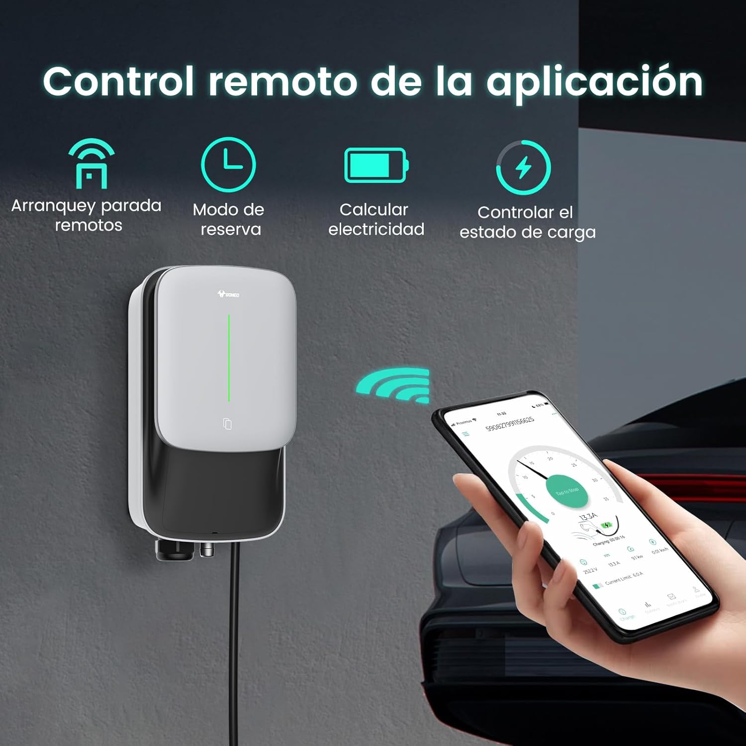Fácil de usar: Admite conexiones WiFi, Bluetooth y Ethernet para garantizar opciones flexibles de acceso a la red. La aplicación GONEO se puede descargar en la tienda de aplicaciones móviles. GONEO admite carga programada, configuración de horarios de carga, encendido y apagado remotos, recordatorios de finalización de carga, recordatorios de enchufes incorrectos y cálculo de potencia de carga y comparación de datos mensuales. Conéctese al cargador de pared wifi dentro de los 3 minutos posteriores al encendido. Si no encuentra el dispositivo, reinícielo. (Subimos un vídeo de conexión)