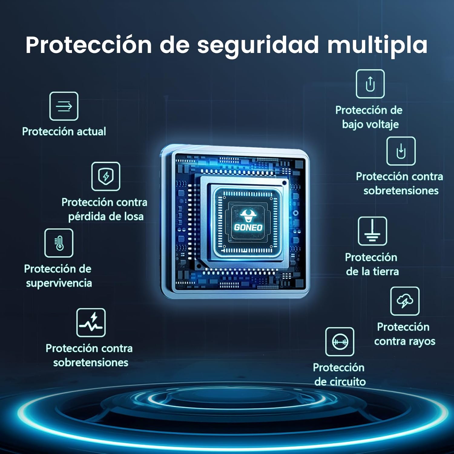 Protección de certificación completa: la estación de carga Goneo incluye CB, TUV-CE, RoHS, REACH, IP65 e IK10, para garantizar la calidad y seguridad del producto. La estación de carga está equipada con nueve funciones de protección principales que incluyen sobrecorriente, sobretensión, subtensión, sobretemperatura, fugas, conexión a tierra, descarga de rayos, cortocircuito y sobretensión para garantizar la seguridad del proceso de carga y la seguridad de su hogar.