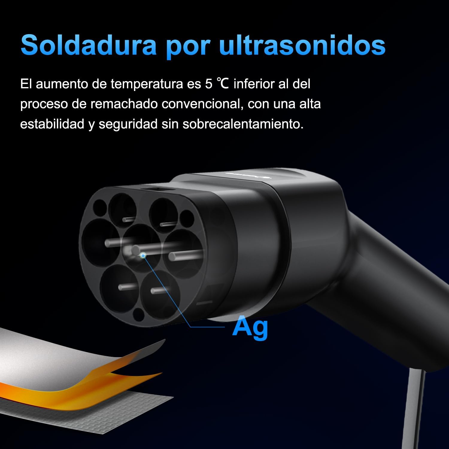 bokman Cable de carga EV tipo 2, 22 kW / 32 A / trifásico / 8 metros / modo 3, cable de carga rápida híbrido enchufable para vehículos eléctricos tipo 2 a tipo 2