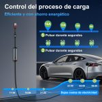 Antes del primer uso: 4 sencillos pasos: 1. Compruebe que el enchufe esté conectado a tierra correctamente. 2. Verifique el límite de potencia de carga de su vehículo. 3. Configure el tiempo de carga y la corriente (¡el dispositivo recordará la última configuración más tarde!). 4. Conecte el dispositivo al vehículo – listo