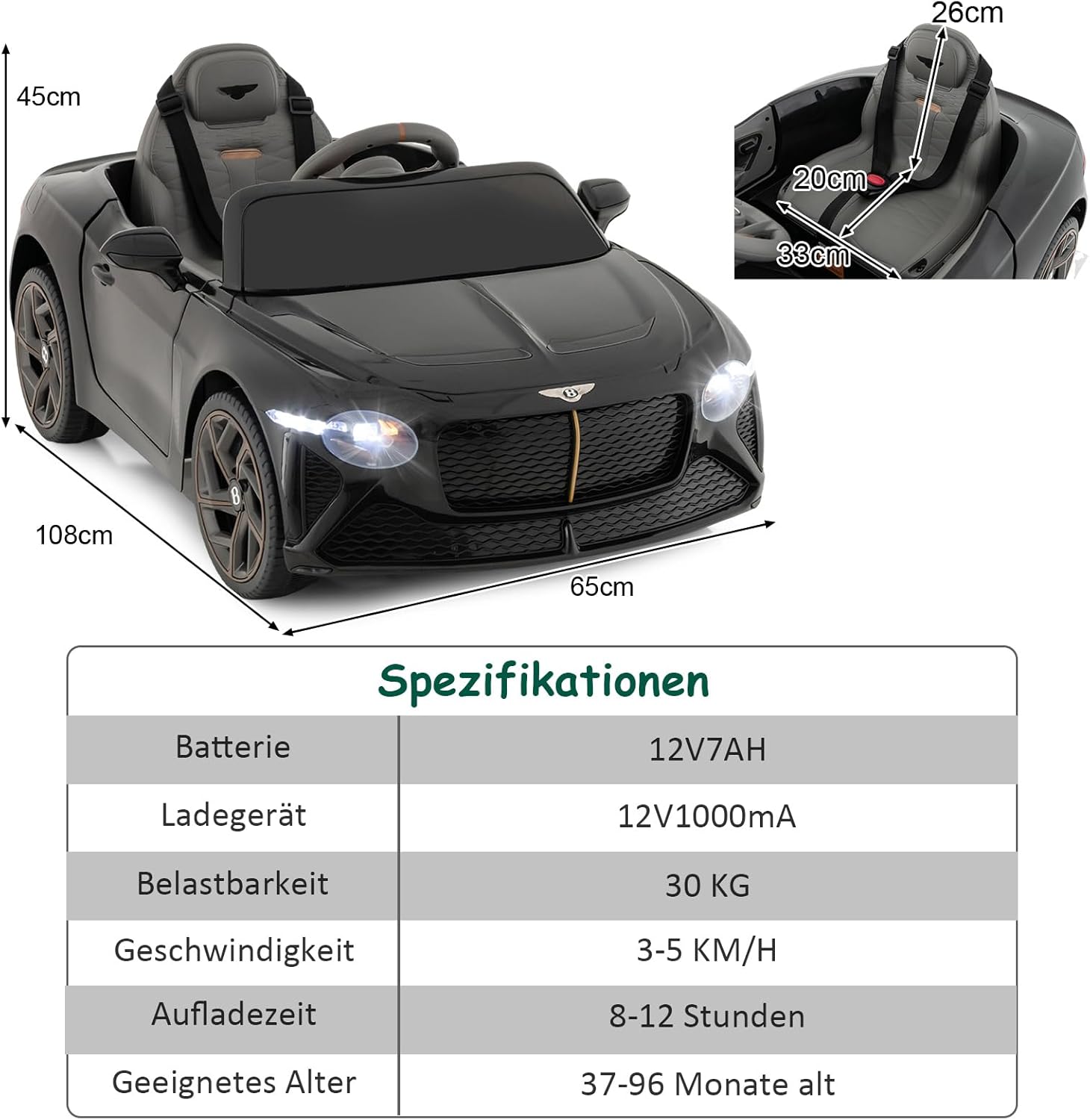 Be the first to review “GOPLUS Bentley Coche eléctrico para niños de 12 V con mando a distancia, luces LED, puertas de tijera, bocina y música, 3 velocidades, vehículo eléctrico para niños a partir de 3 años (negro)” Cancel reply