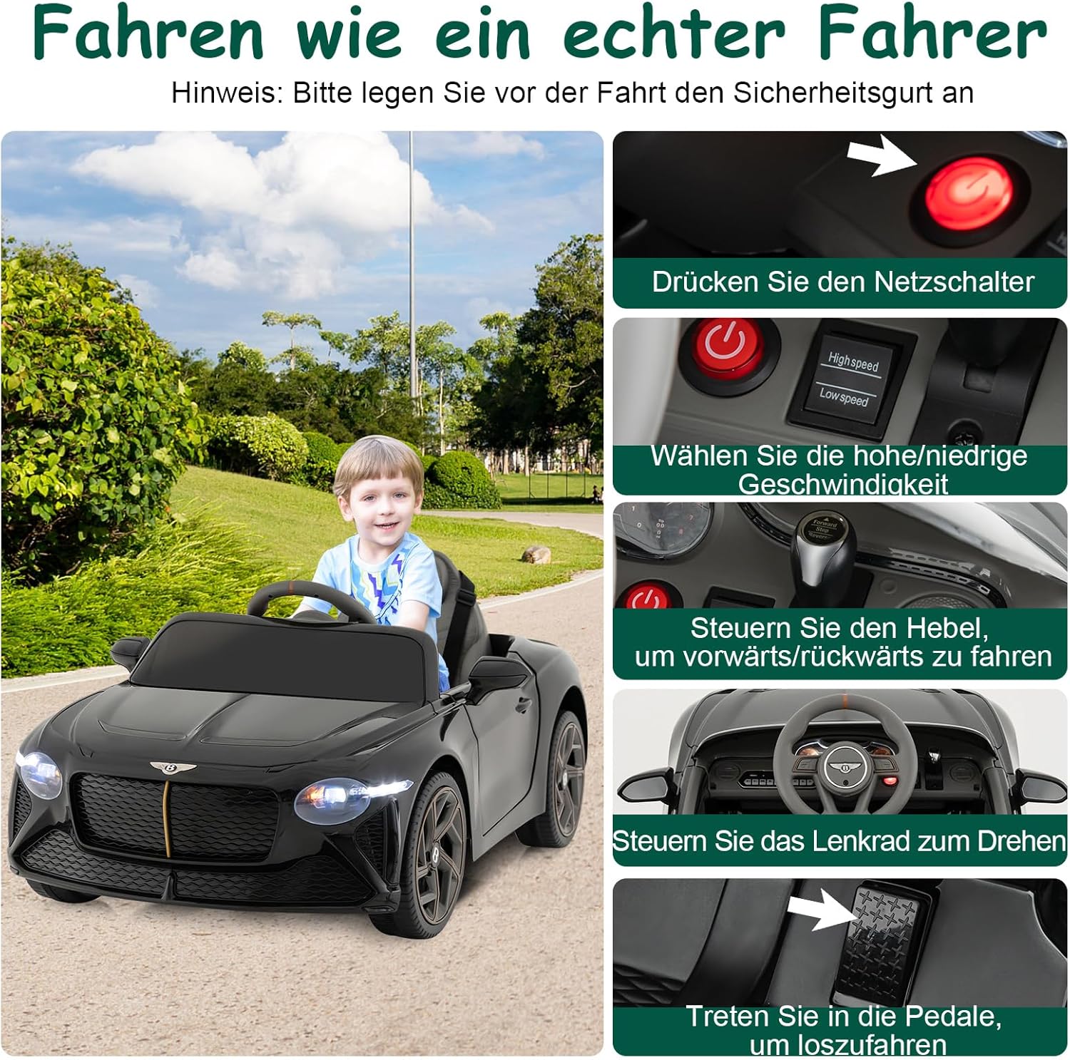 GOPLUS Bentley Coche eléctrico para niños de 12 V con mando a distancia, luces LED, puertas de tijera, bocina y música, 3 velocidades, vehículo eléctrico para niños a partir de 3 años (negro)