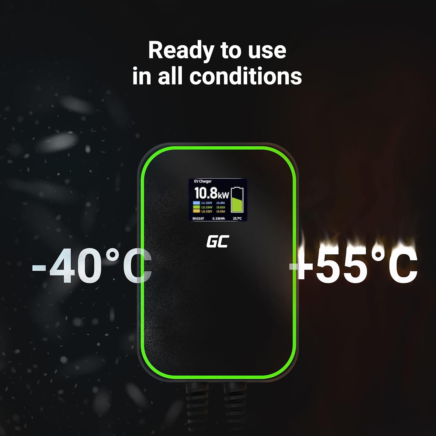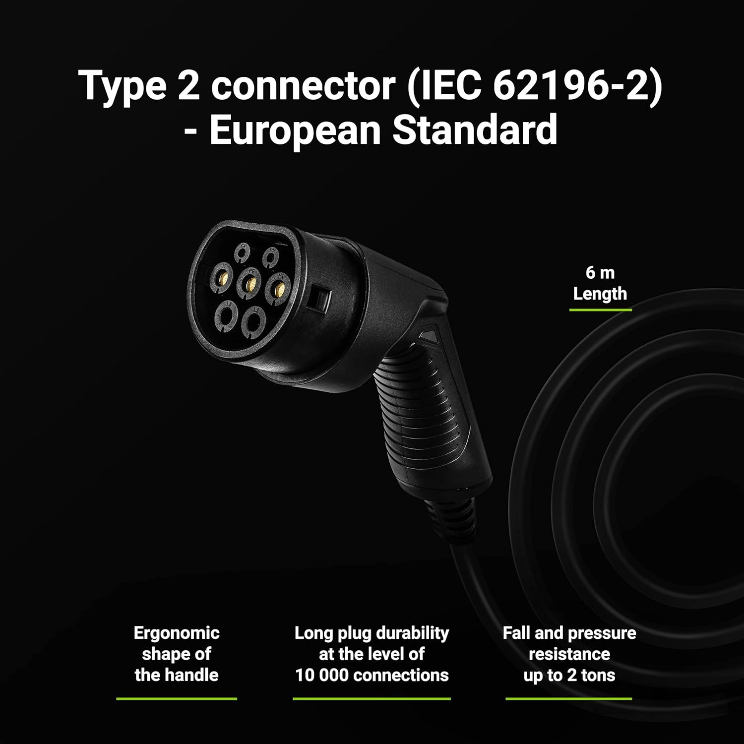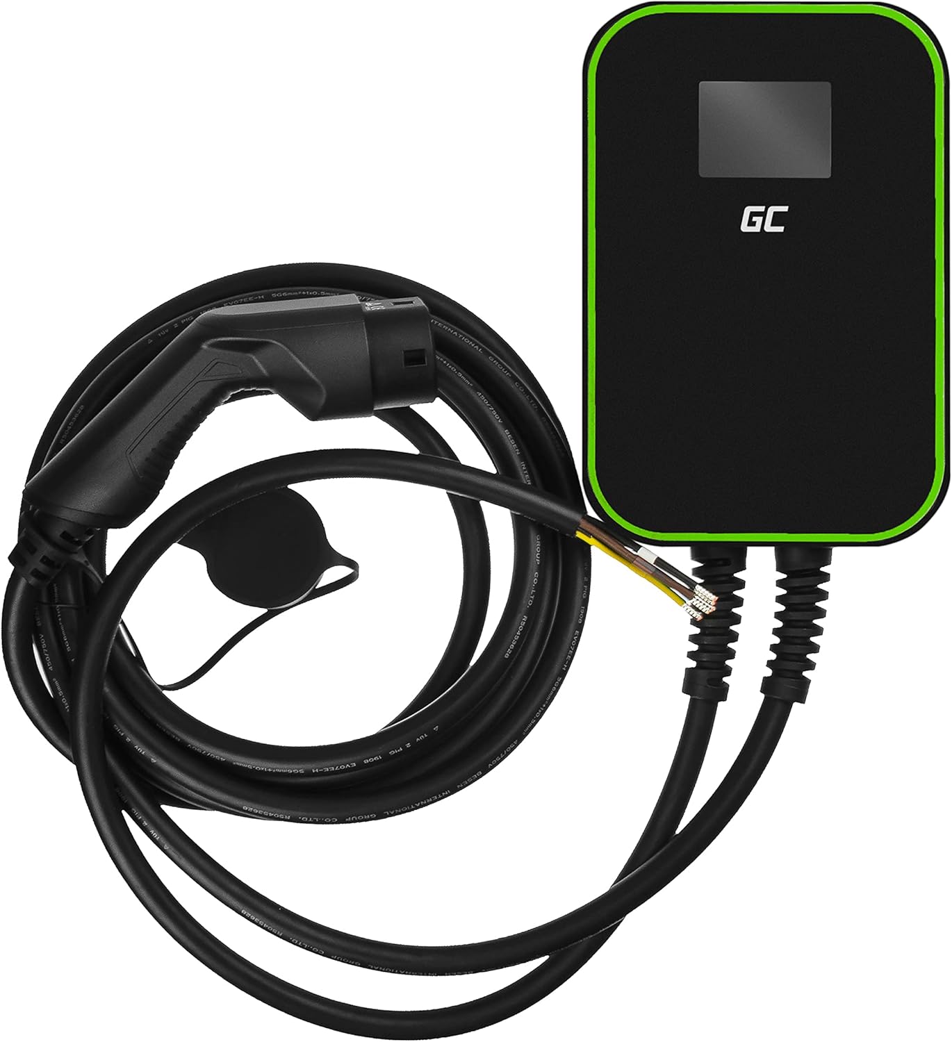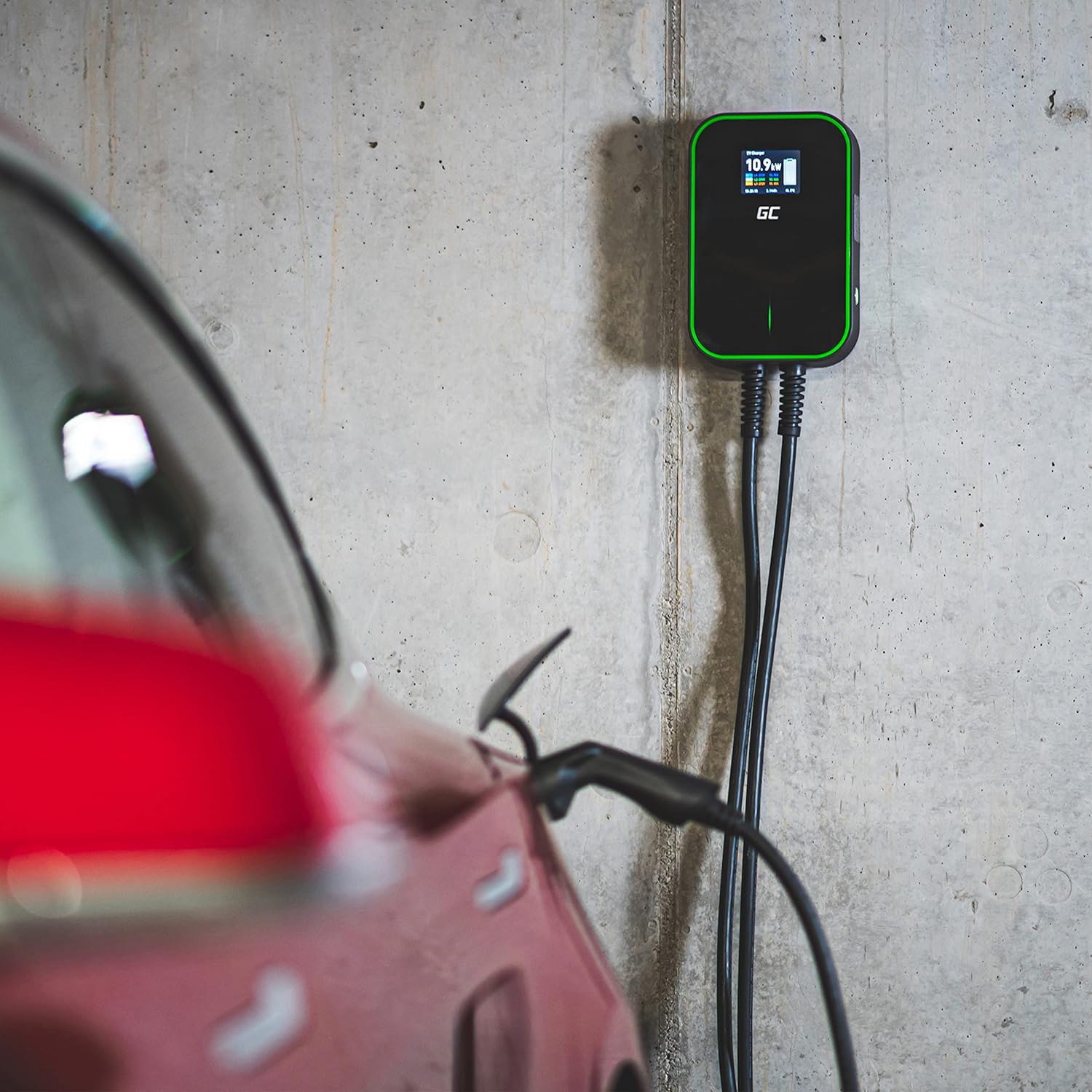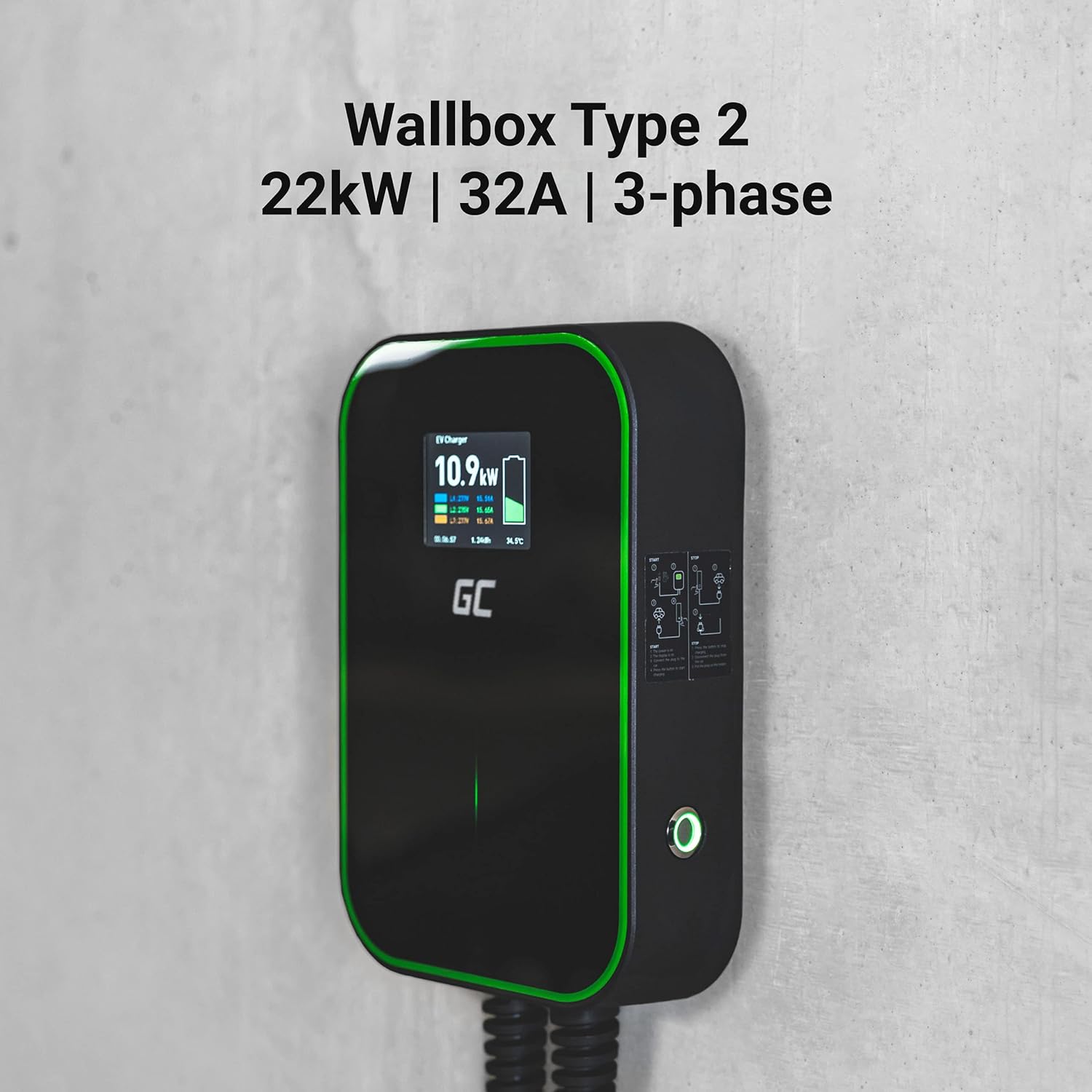 Green Cell GC PowerBox 22kW Wallbox Tipo 2 Cargador para Vehículos Eléctricos EV PHEV Cable 6m Pantalla LCD Compatible con Todos los EV Model 3/S/X/Y, ID.3, ID.4, i3, 500e, EV6, E-Tron, ZOE, Mach-E