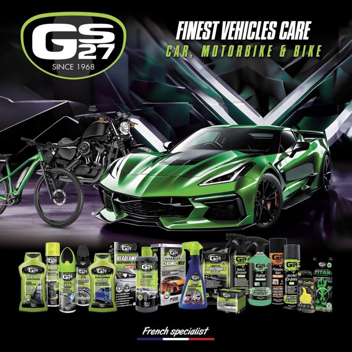 Created in 1968 in Touraine, the GS27 brand is a French family business that has become a real reference in the field of maintenance products dedicated to cars, motorcycles and bicycles. Thanks to its keen sense of innovation, the brand has positioned itself as a sector leader in the French market, remaining attentive to its consumers and their needs. All products developed by the brand are recognized for their extreme quality and their formulas with cutting-edge technologies. Today present on all 5 continents, GS27 always offers more innovations to help you keep vehicles efficient, clean and beautiful for a long time.