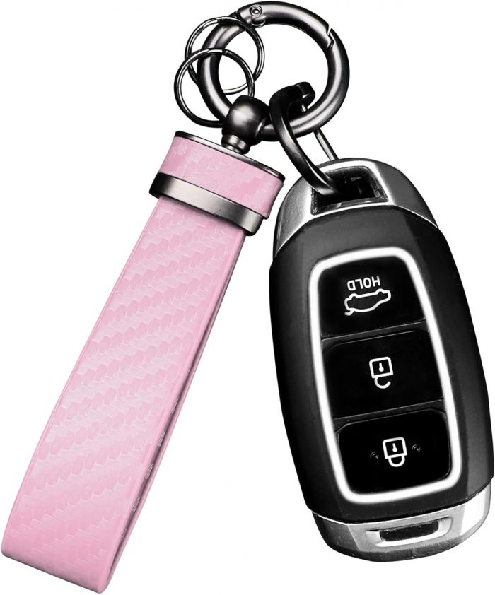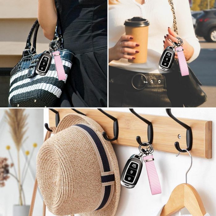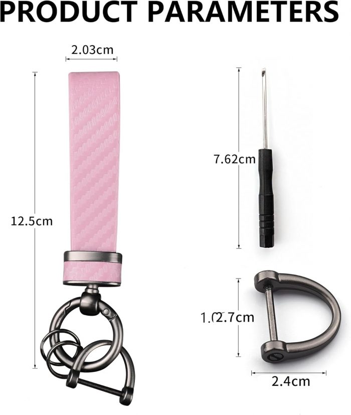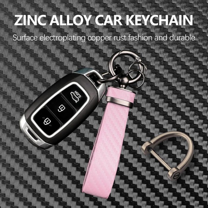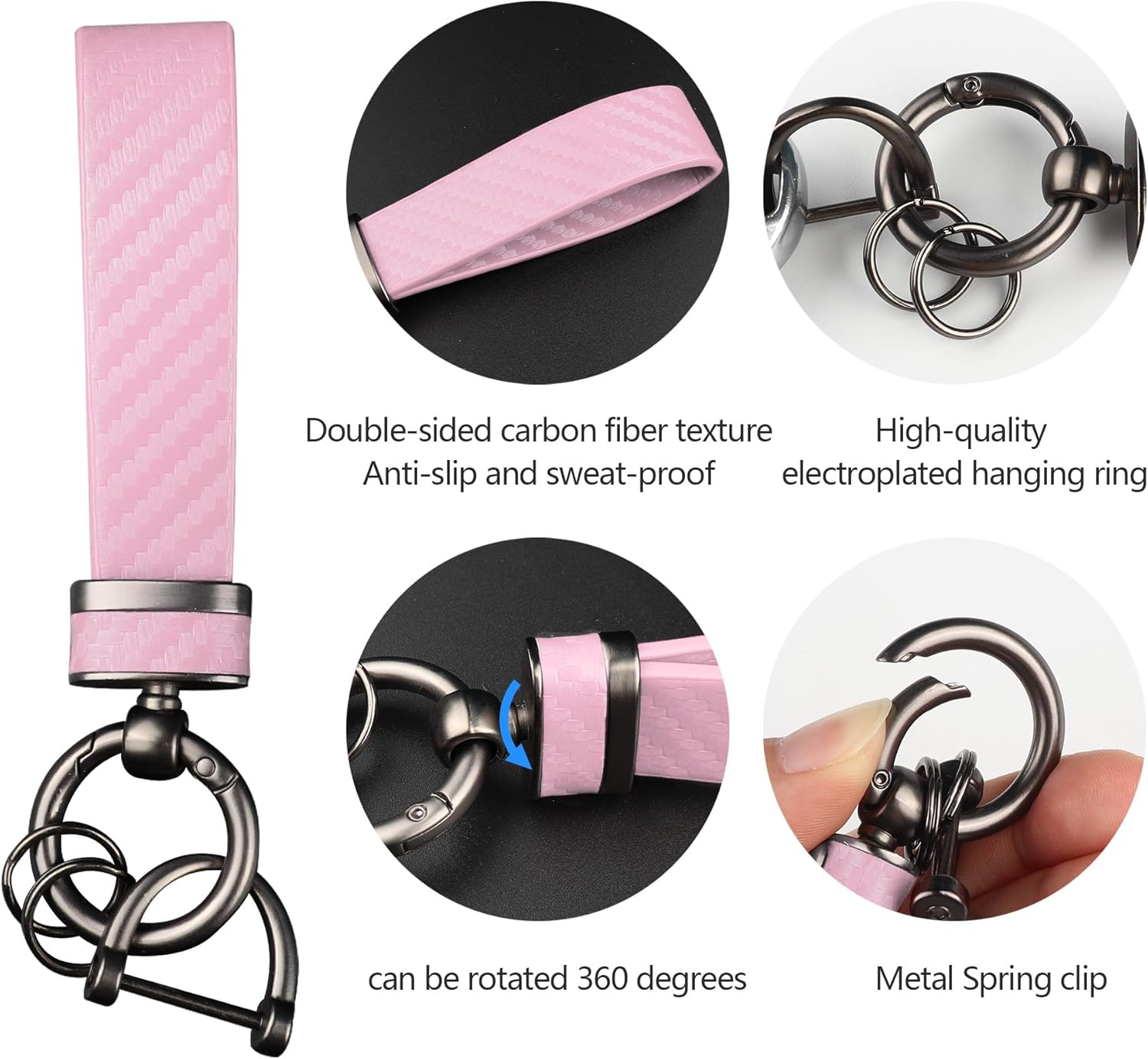 GTLM Kits for Car Keychains, Carbon Fiber Leather Key Ring with Anti-lost D Ring, Practical Car Accessories Key Ring (Pink)
