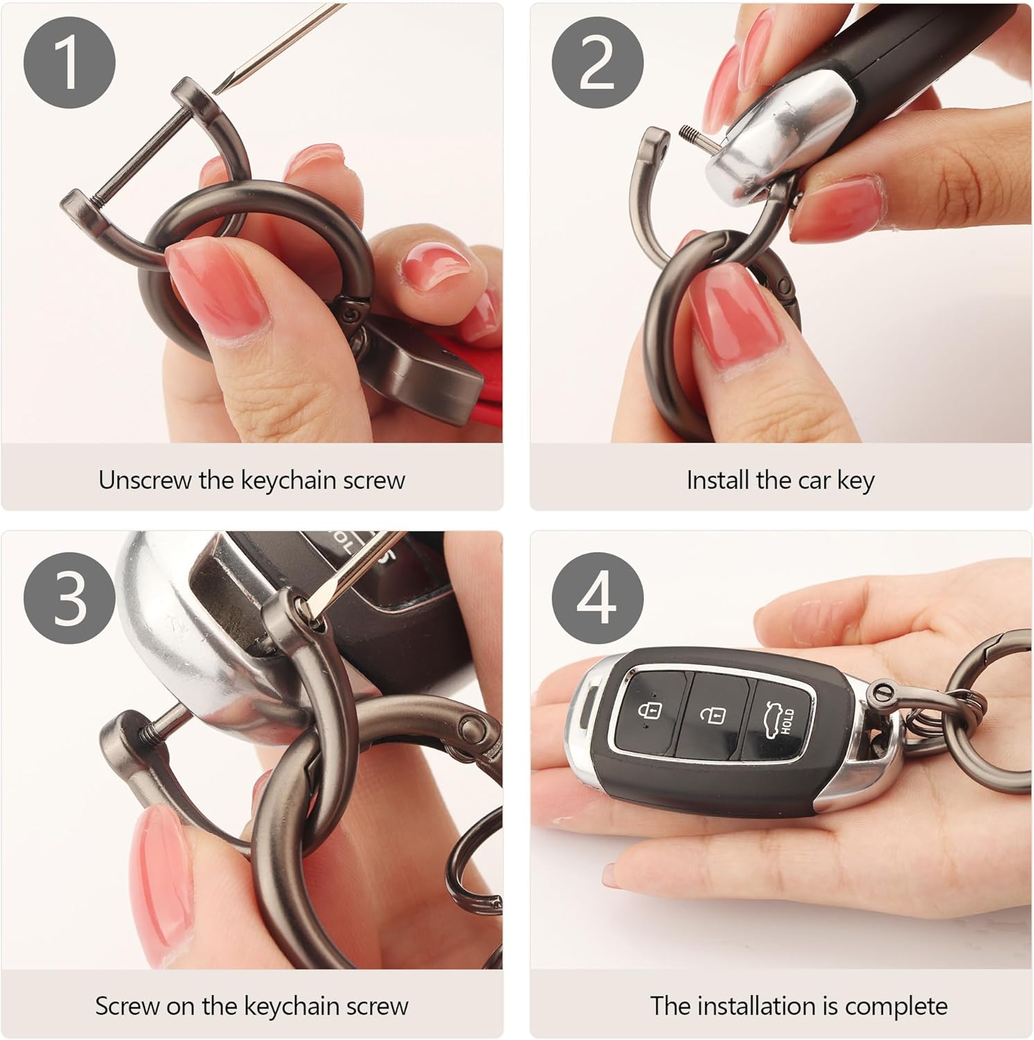❤【Wide Application】Multifunctional leather metal car keychain, the key chain is compatible with most car key fobs, Fo Volkswagen, Chevrolet, Nissan, Honda, Jeep, Mercedes, Toyota, Hyundai, Ford, Dodge, etc. And this keychain can also be used as homem chaves holder, motorcycle key chain and clip other gadgets, etc. Bring convenience to your life.