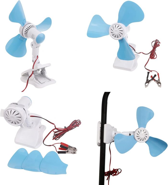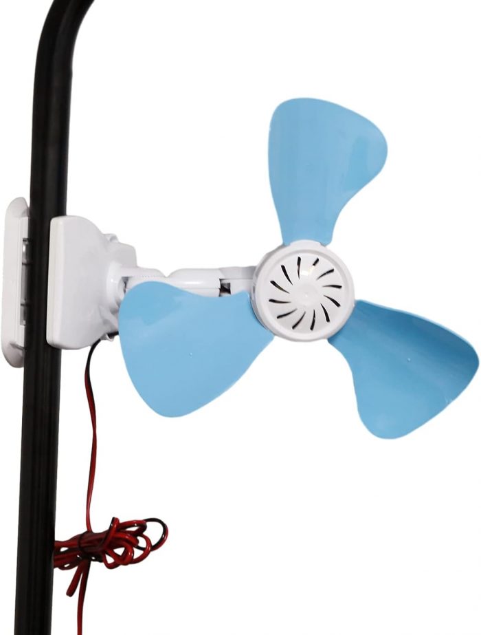 12V desk fan ceiling fan clip fan adjustable angle design, can be easily clipped to any object surface of thickness within 6cm.