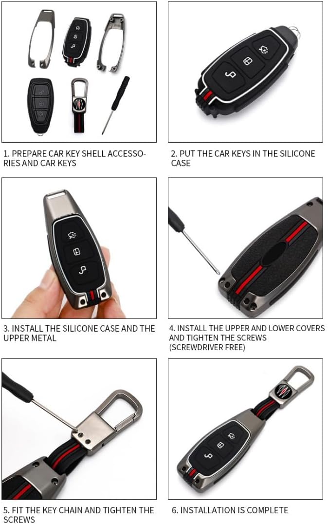 Happyit Zinc Alloy + Silicone Car Key Cover Cases for Ford Fiesta Focus Mondeo Kuga Escape Falcon Galaxy Fusion Mustang Explorer Edge Escort Ranger 3 Buttons, Matte colour, B