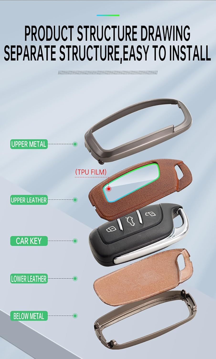 This key holder cover Made according to original car key 1:1, completely fit for original key without leaving any gaps