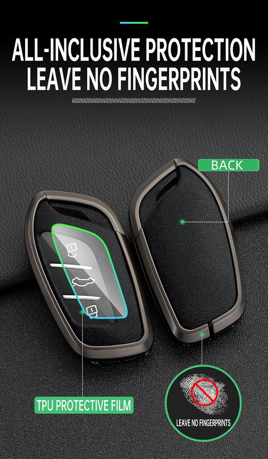【Material & Design】:The smart car key fob for made of MG4 high quality Zinc alloy with leather texture, fashionable and high-end .Block design and screw two layers of fixed protection