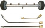 Package content: pressure washer length approx. 16 inches, straight rod length: about 15 inches, short rod length at 30 degrees: about 7 inches, long rod length at 45 degrees: about 14 inches. Car wash works for pressure washers with hot and cold water. It has 4 nozzles and 2 rollers.