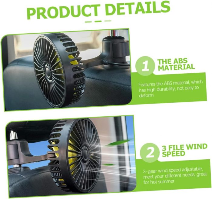 – 3 velocidades ajustables, satisface sus necesidades, ideal para ventiladores de automóvil de verano calurosos para asiento trasero.