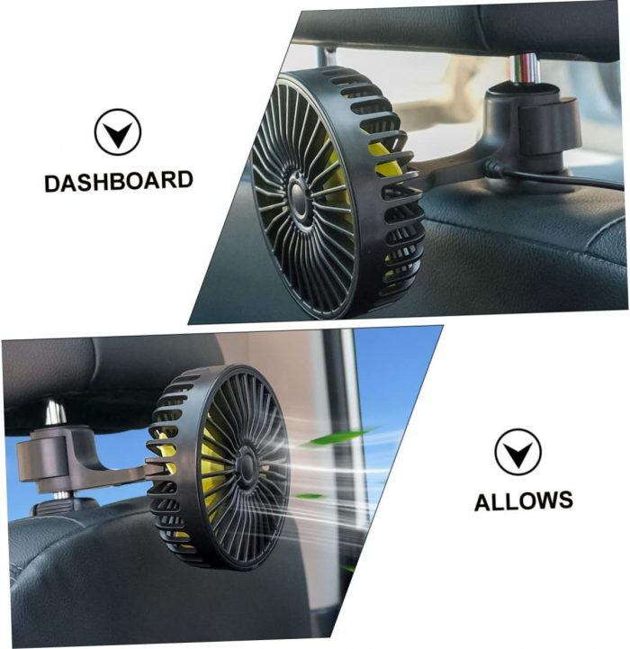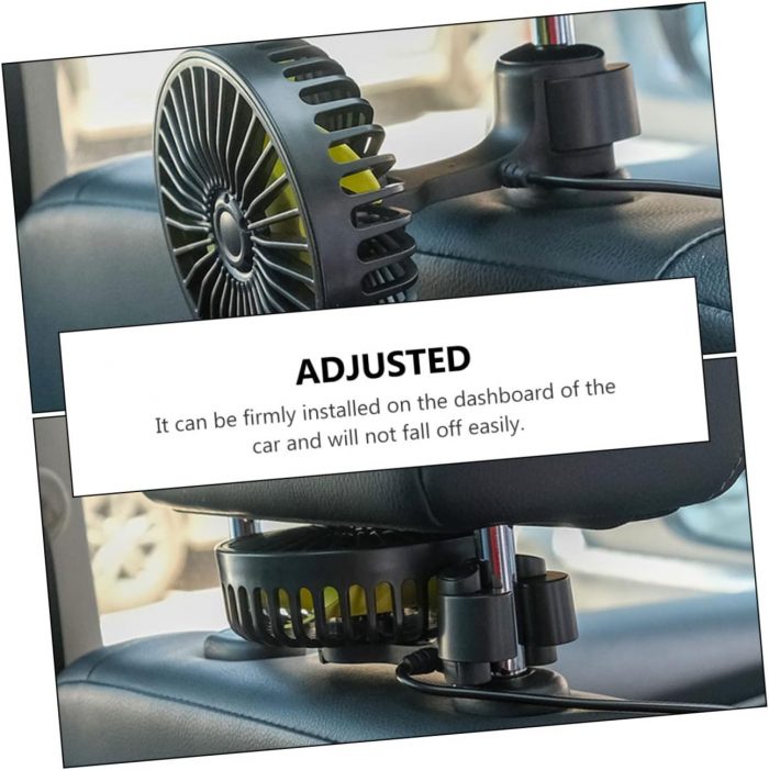 – It can be firmly installed on the car headrest and will not fall off easily Vehicle rear fan.