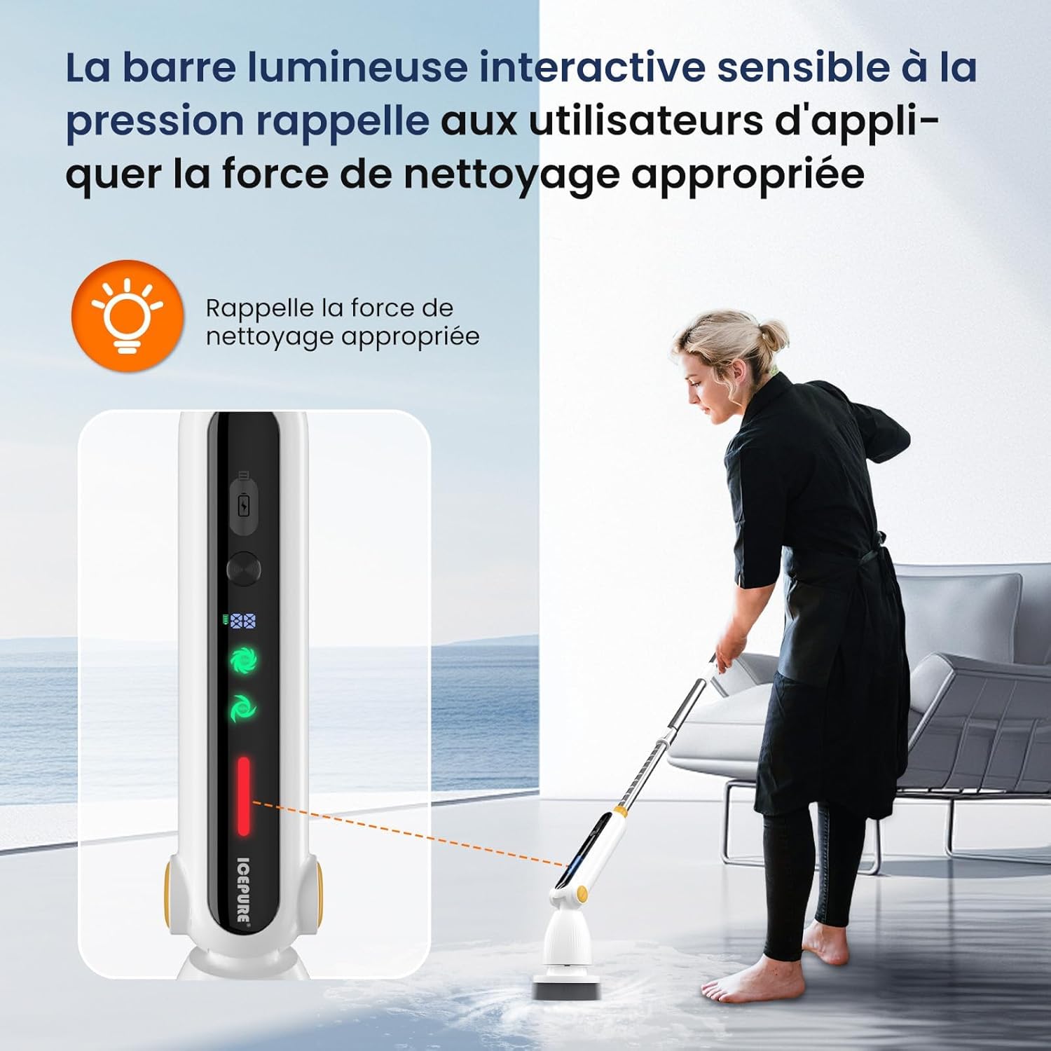 TECNOLOGÍA DE SENSOR DE PRESIÓN: nuestra tecnología patentada, el único cepillo de limpieza en el mercado que detecta y señala la presión. Cuando la presión es demasiado alta, se encenderá una lámpara roja para advertir de posibles daños a los objetos o sobrecargar el dispositivo y solicitar al usuario que ajuste la presión de limpieza.