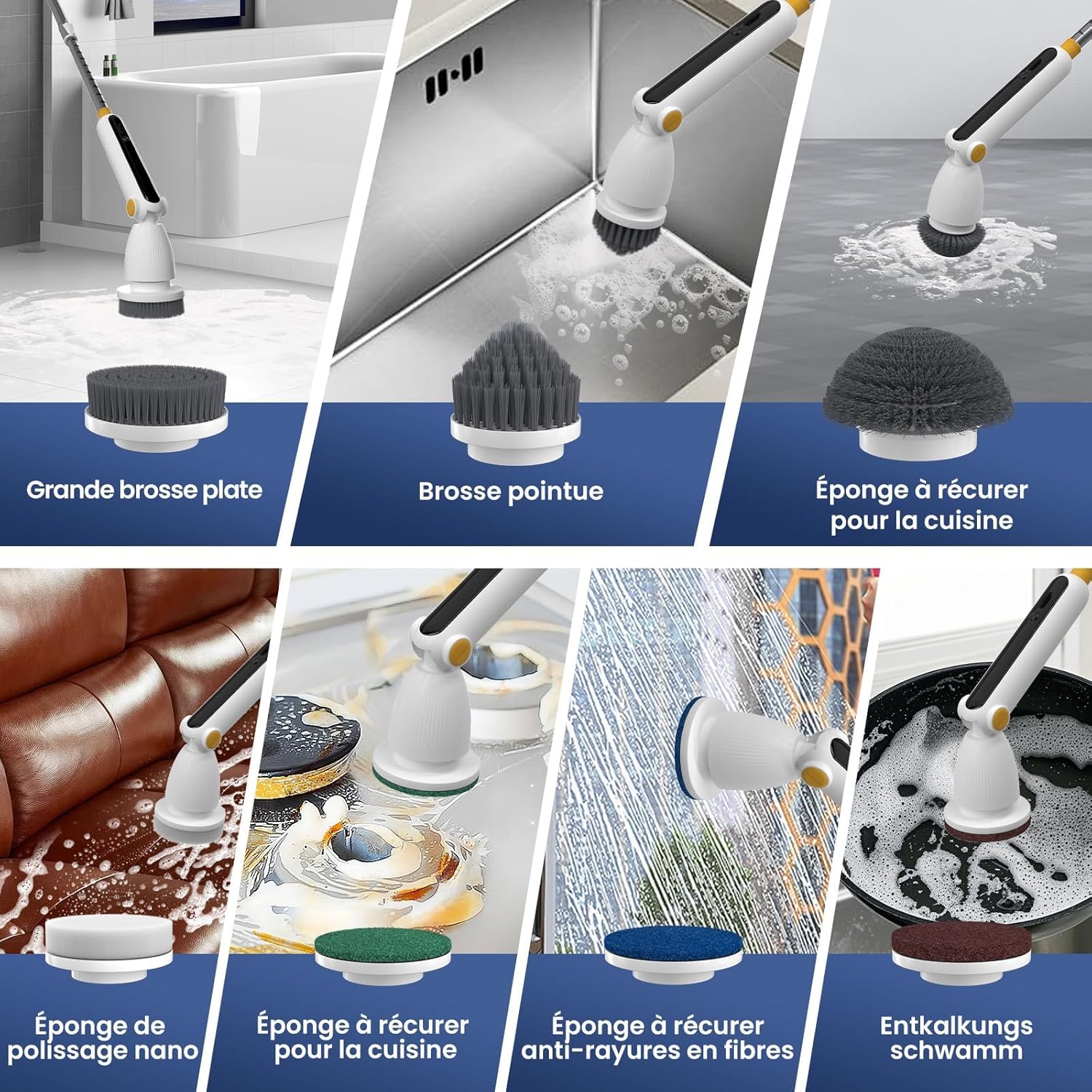 Novedad 2025 Cepillo de limpieza eléctrico: especialmente diseñado para baños y cocina. El potente cabezal giratorio elimina sin esfuerzo la suciedad, la grasa y la cal.