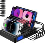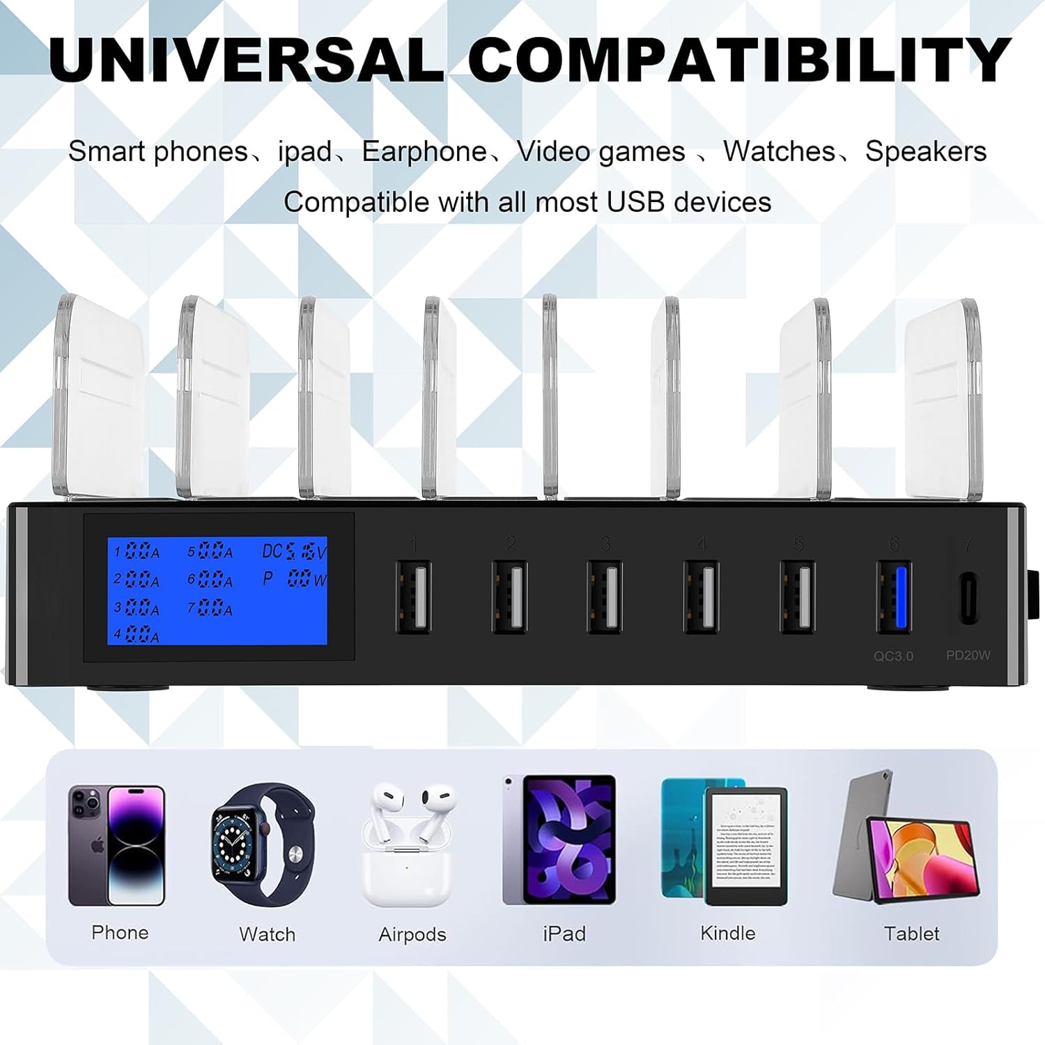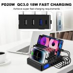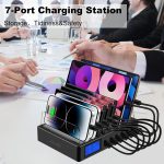 ➢ [Multifunctional Fast Charger Organizer] With 7 USB charging ports (with 2 micro, 4 to pple, 1 type-c cable), each port of the charging station is designed for different degrees of current offering a safe amount of current for different devices with minimum charging time (5V-14A/70W). The feature of this charger organizer, which can charge 7 devices at once, contains PD and Q. C C 3.0 fast charging ports. This charger is compatible anywhere like a gathering, parties, family, school, etc.