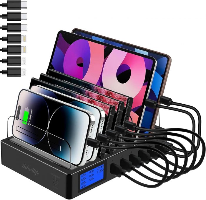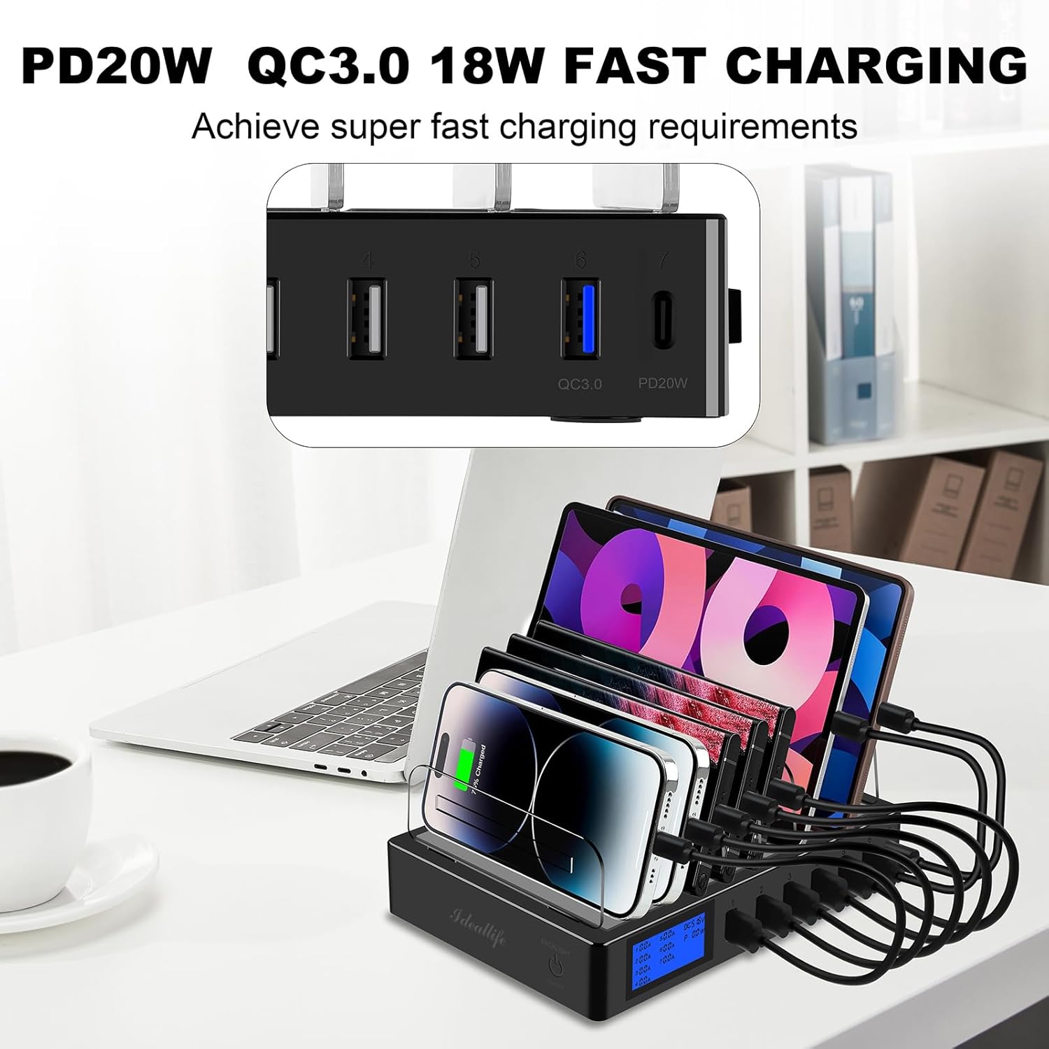ideallife Multi Device Charging Station, Fast USB Charger with Type C PD20W QC3.0, 70W Desktop Docking Station Compatible with Smartphones