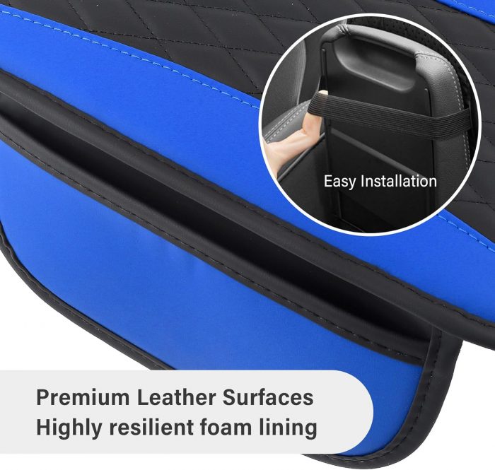 Improved Universal Car Armrest Cover, Microfiber Leather Universal Car Armrest Cover with 2 Pockets, Armrest Cover Accessories Car Interior for Vehicles (Blue)