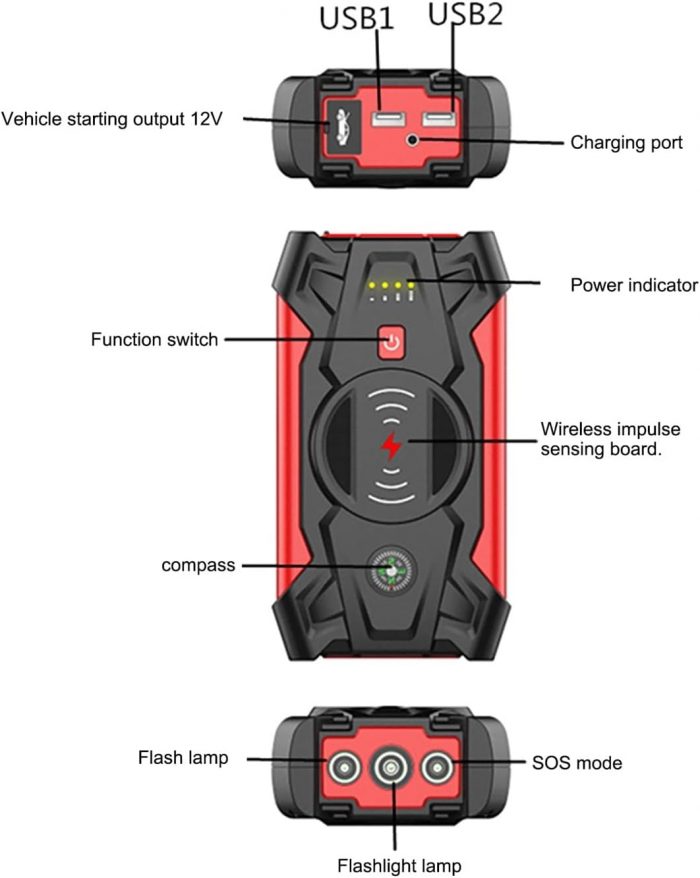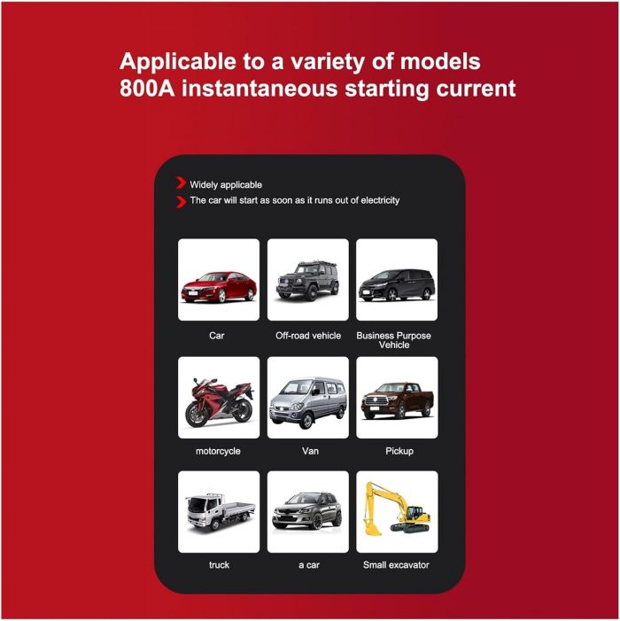 Garantía de arranque más seguro: su automóvil se puede encender fácilmente y se puede encender hasta 60 veces con una sola carga. Se puede utilizar para automóviles, motores, barcos, ATV, UTV, yates y motos de nieve.