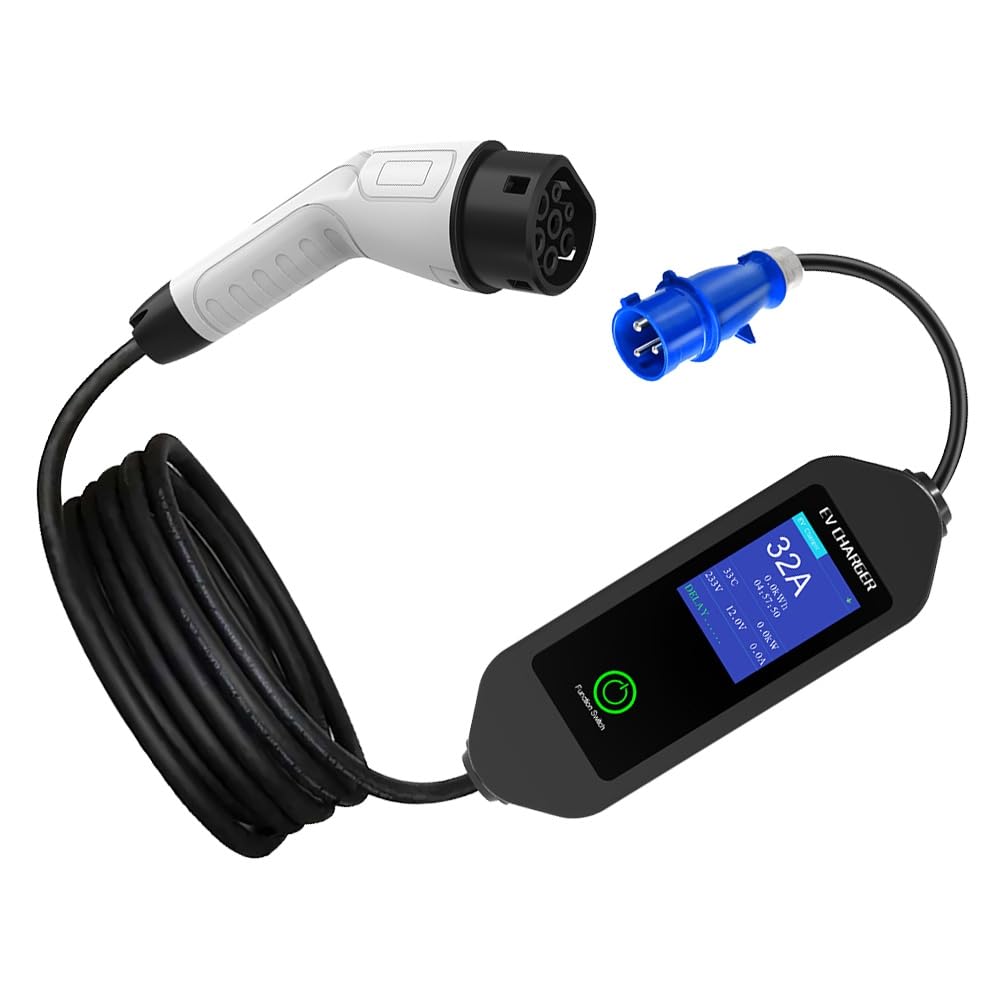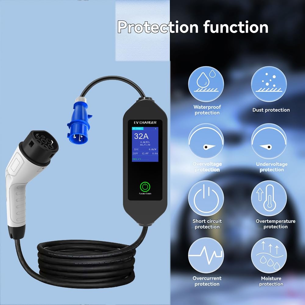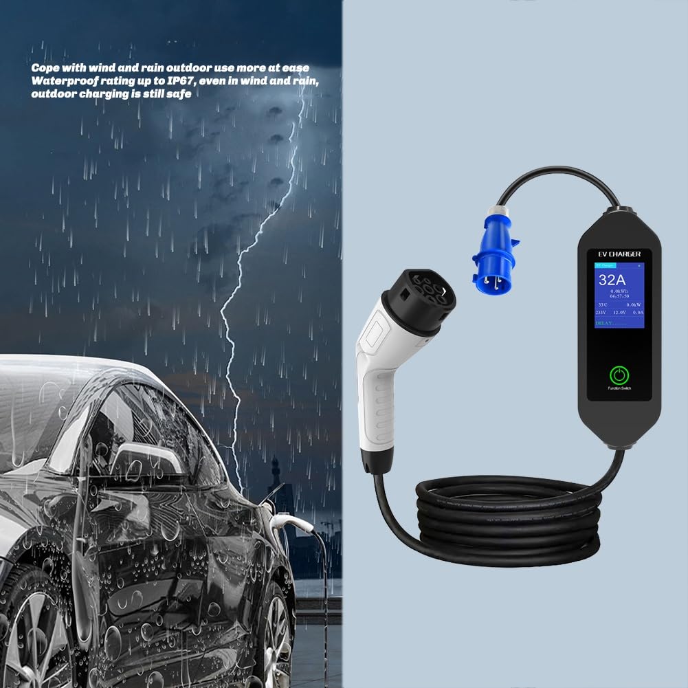 Cargador para Coche Eléctrico 7,4 kW, Cargador para Vehículo Eléctrico 32A (20 m, 6-32A) dé Cargador EV y Estación de Carga para Coche para Modelo 3/Y y Otros EV/PHEV