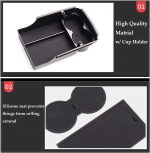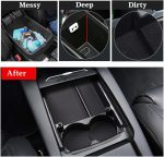 Limitado al ancho de la caja de almacenamiento de la consola de fábrica, el portavasos solo puede almacenar botellas de agua de 21 oz. Proporciona espacio de almacenamiento adicional para administrar su billetera, gafas de sol, bolígrafos, tarjetas de presentación o teléfonos en un almacenamiento de consola espacioso y profundo. Deje espacio para almacenamiento debajo. ¡Olvídate del desorden!