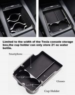 Limitado al ancho de la caja de almacenamiento de la consola de fábrica, el ancho de los dos portavasos es de 2,9 pulgadas. El portavasos puede almacenar una taza grande de Starbucks junto con una lata pequeña de bebida o dos botellas de agua cilíndricas de 21 onzas. El paquete incluye 1 bandeja de consola central y 3 tapetes antideslizantes.
